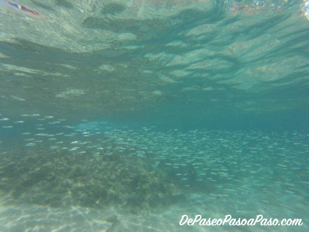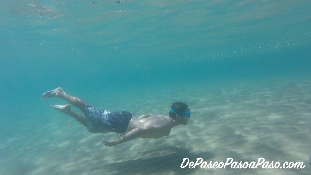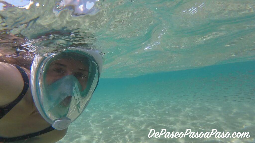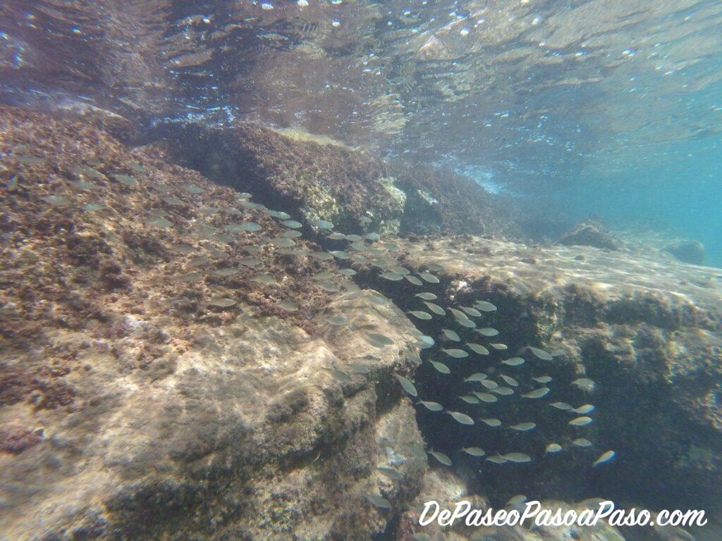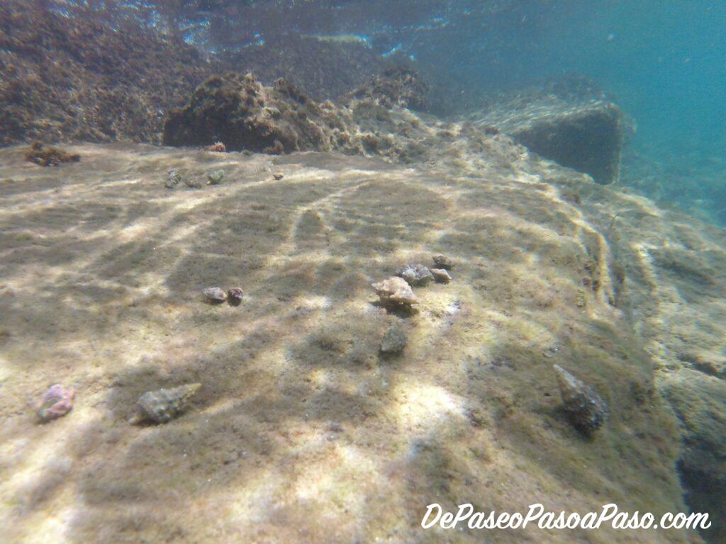 Al estar rodeado de rocas, el mar está muy calmo, y es posible realizar snorkel en sus cristalinas aguas.