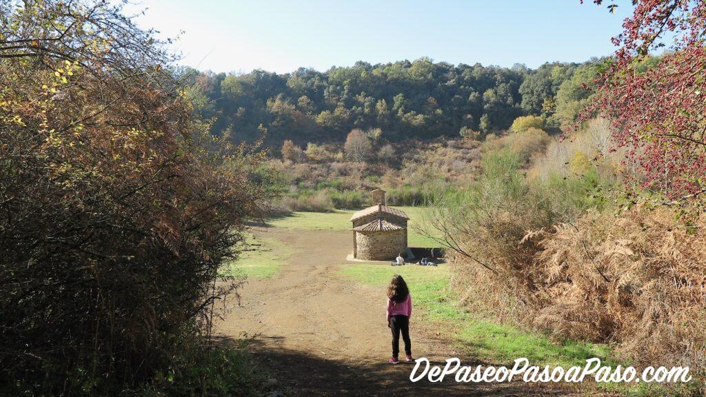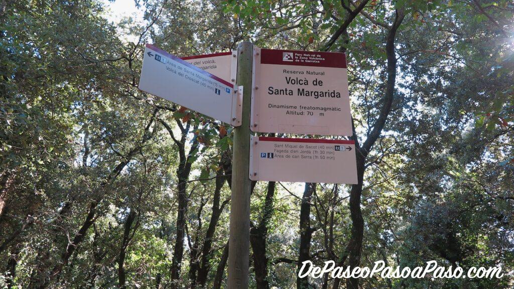 Tras un hermoso y placentero recorrido por La Fageda d’en Jordá, nos dirigimos hasta el Volcán Santa Margarita. Dejamos el coche en el parking📍 (gratuito y bastante amplio) y comenzamos a caminar cuesta arriba para acceder al cráter del volcán y visitar la Ermita Santa Margarida📍.