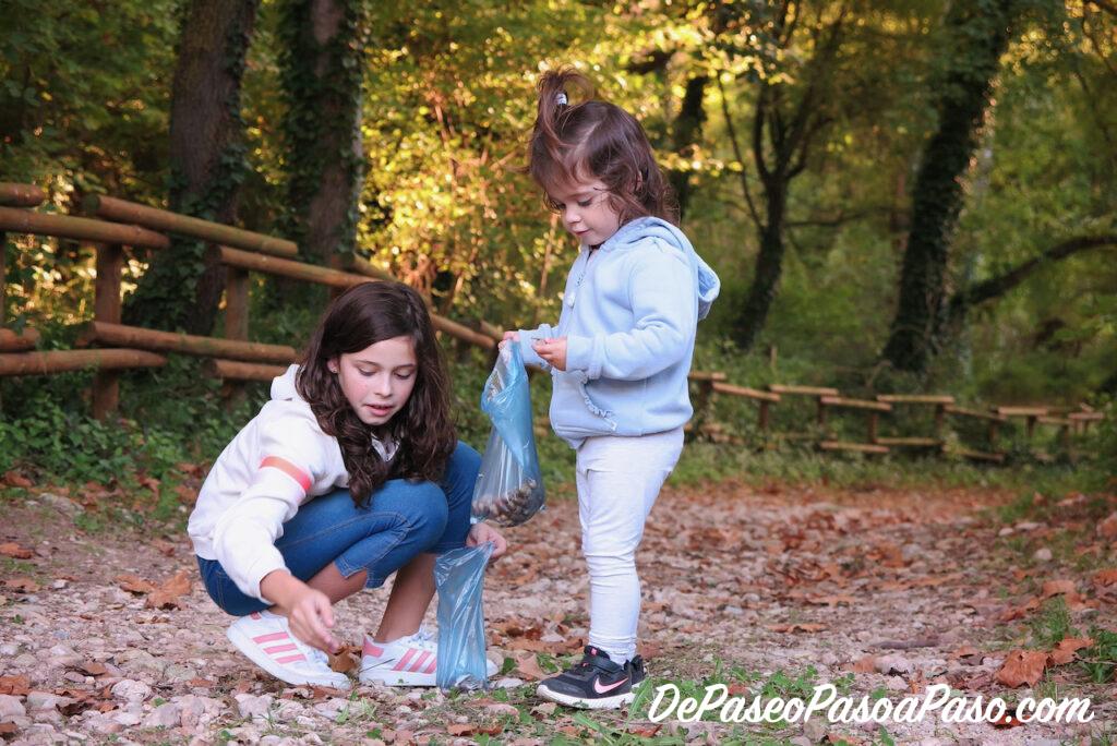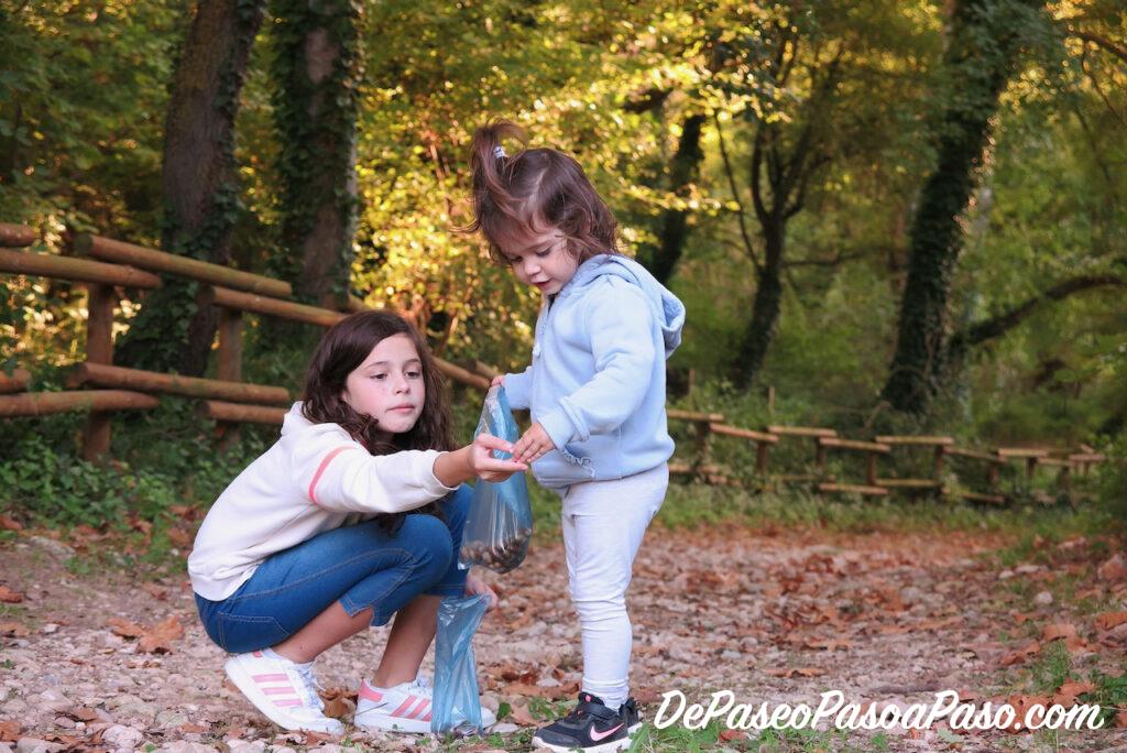 De regreso nos volvemos a detener para que las peques jueguen y disfruten de la naturaleza. Juntaron bellotas, hojas y palitos, con los que luego haremos un collage.
