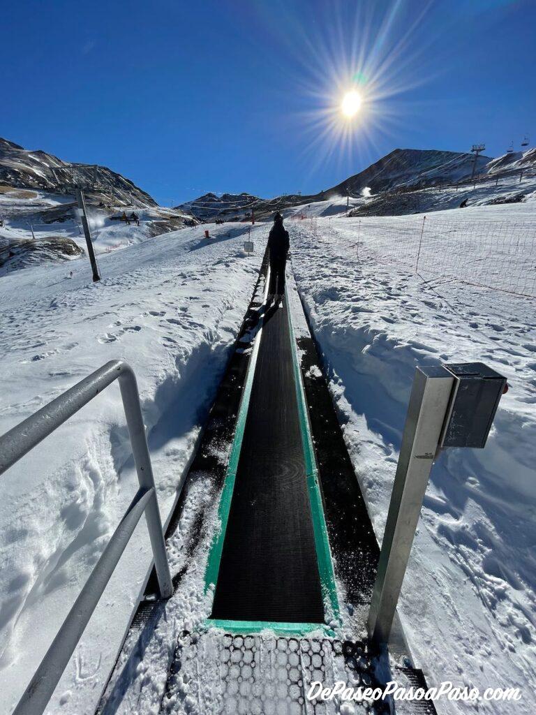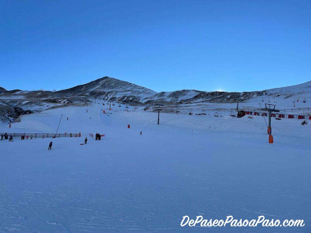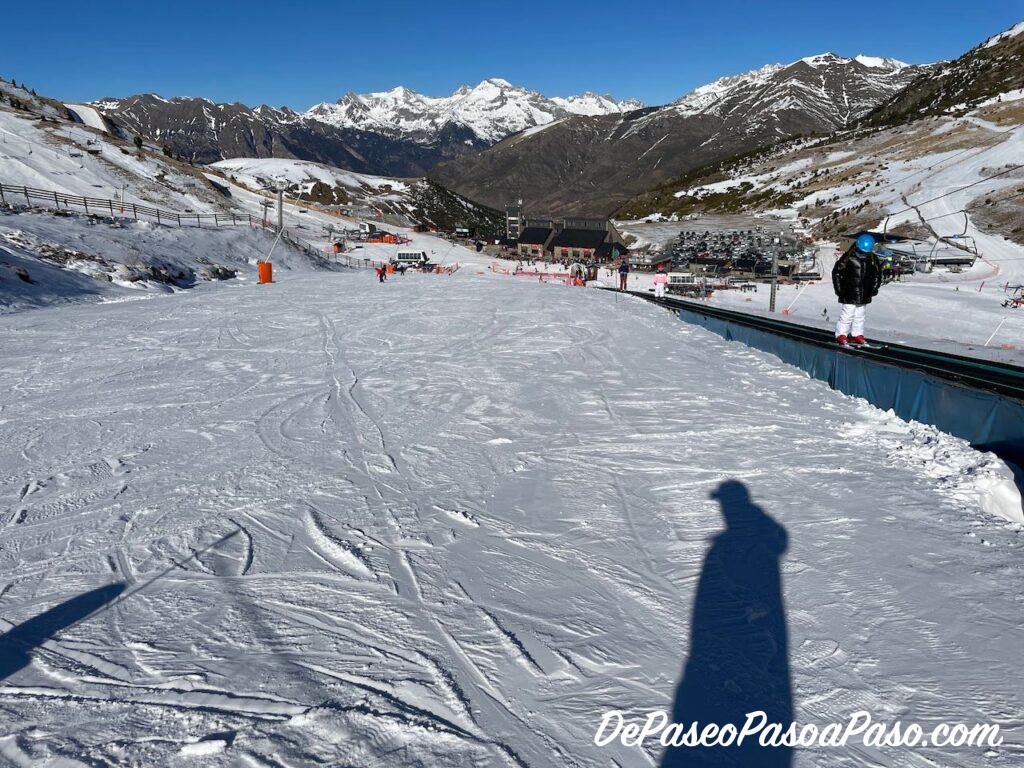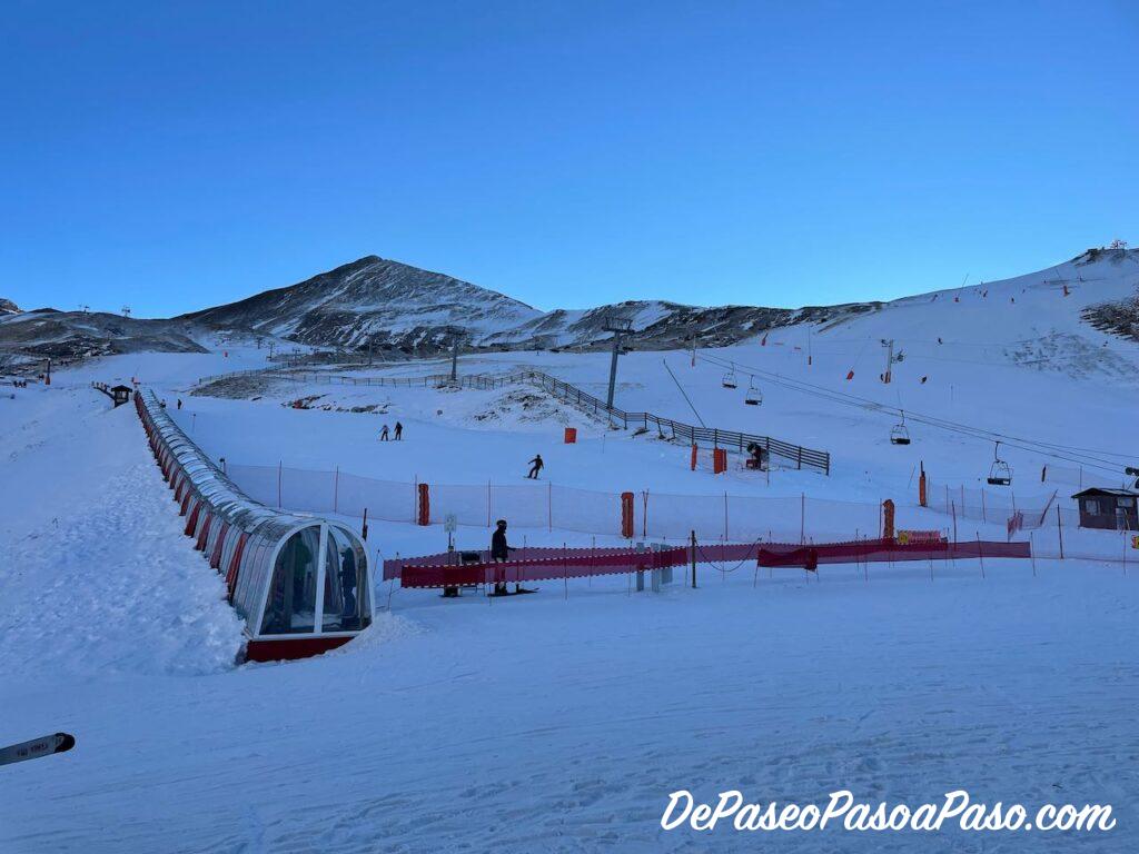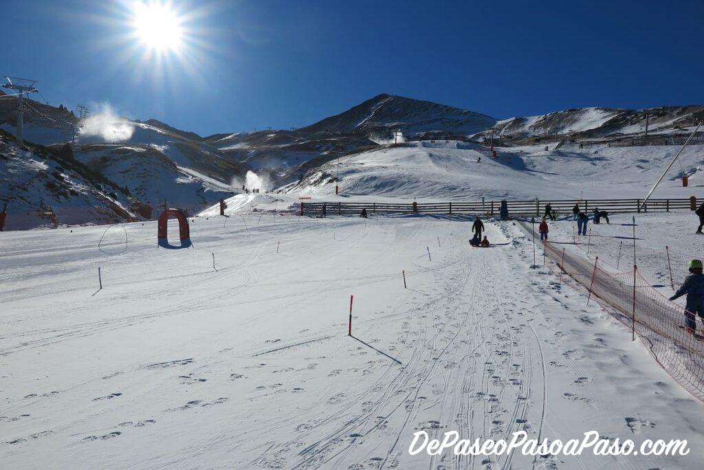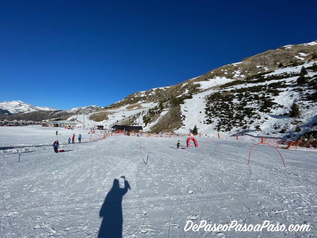 Junto a la zona lúdica hay otra área para principiantes en donde se imparten las clases de esquí, pero a la que también puedes acceder si tienes un forfait. Es una zona pequeña con poca pendiente y con cinta transportadora.
