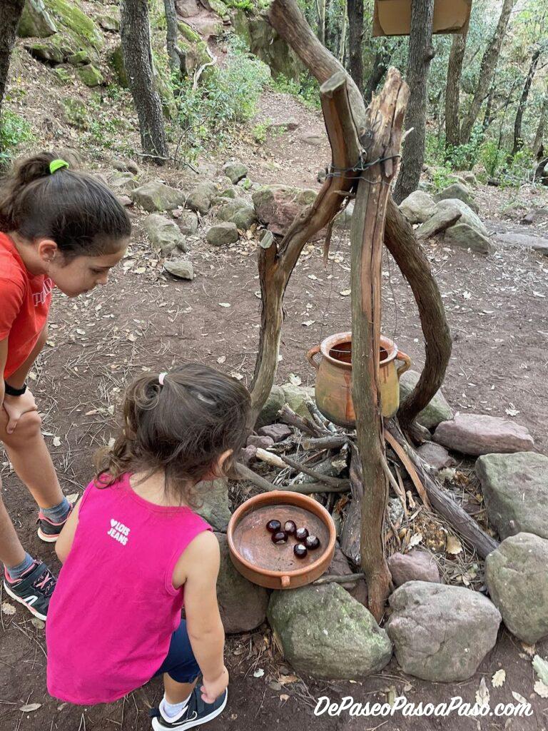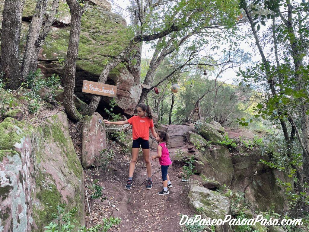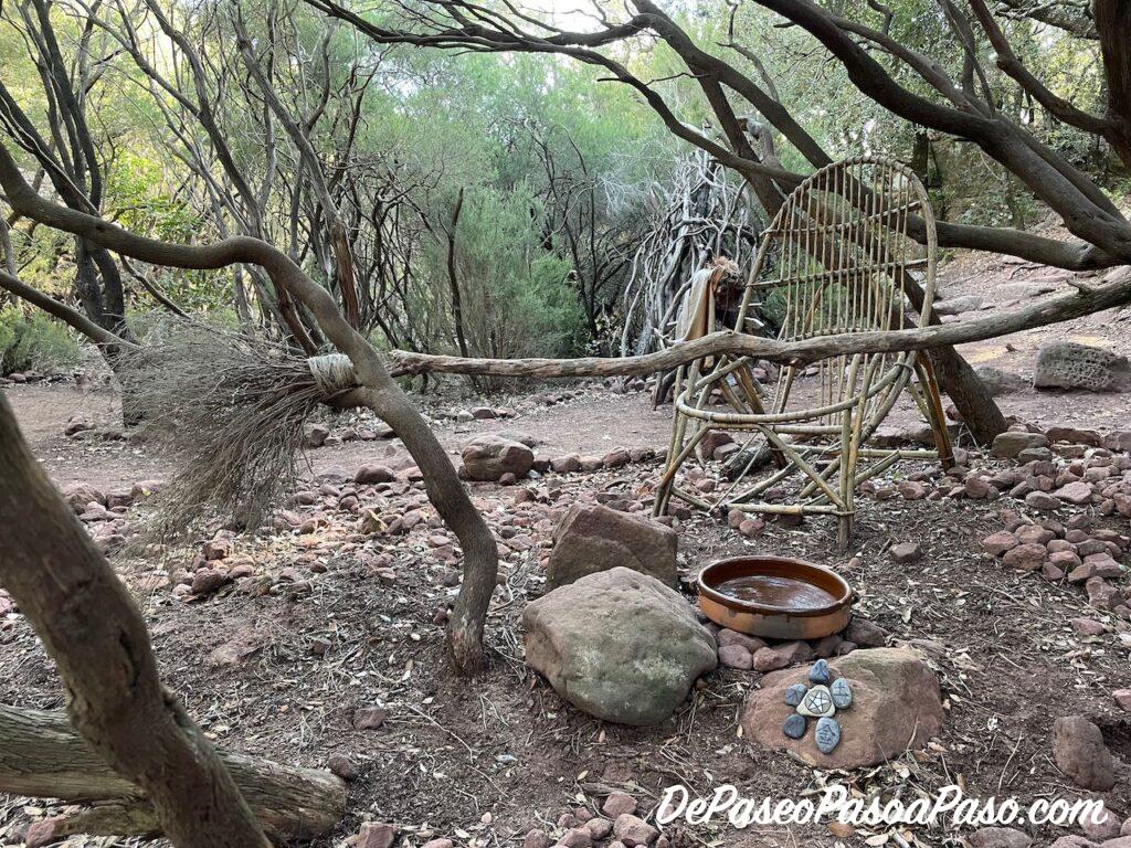 Son unos pocos metros hasta llegar a la primera casa de una bruja! A partir de aquí es ir y venir de una cueva o casa a otra. A las niñas les encantó descubrir objetos y cosas de brujas!
