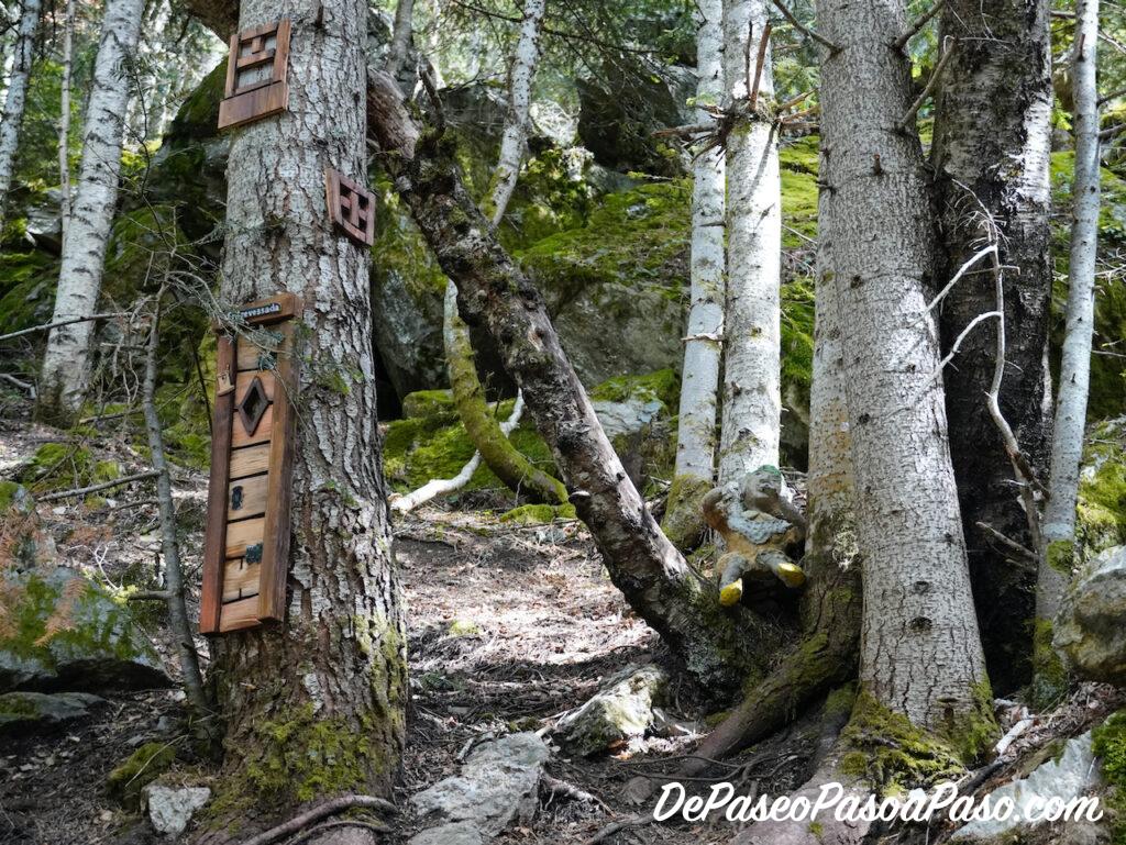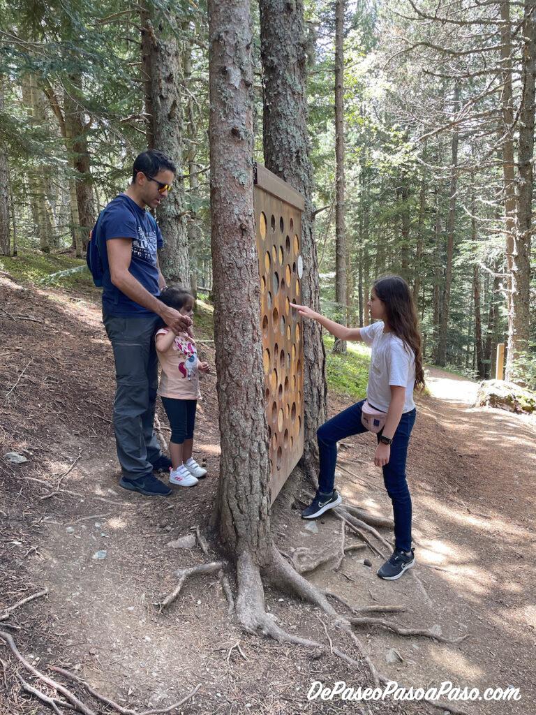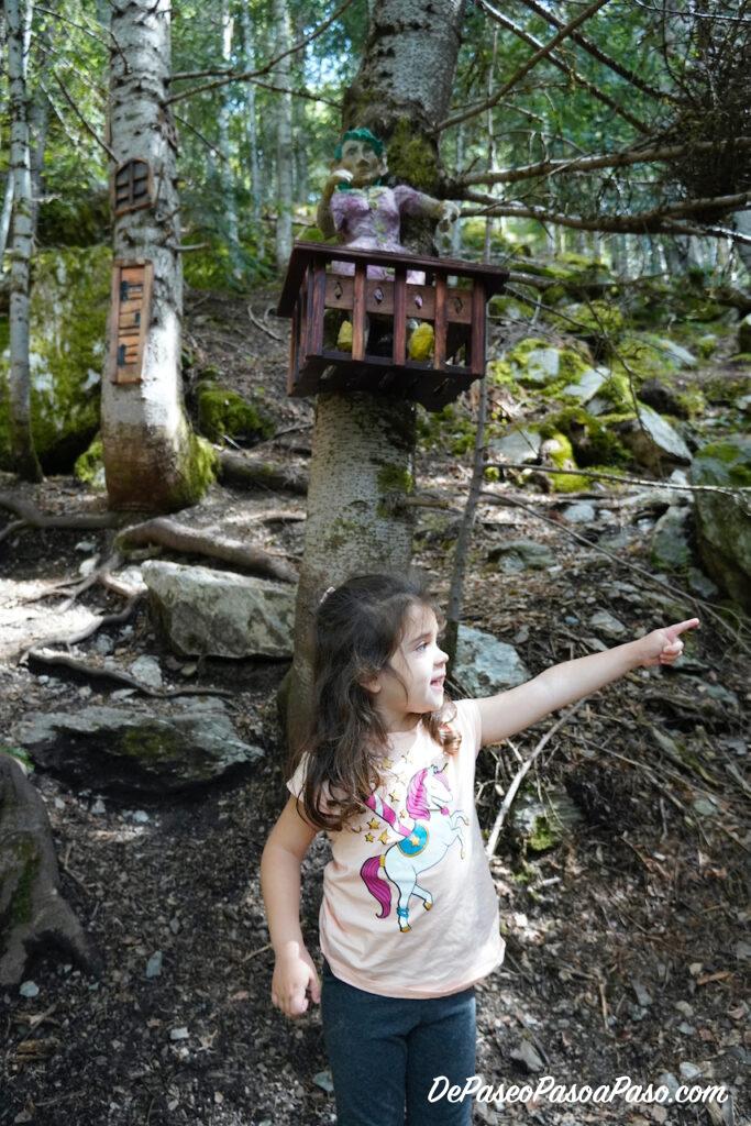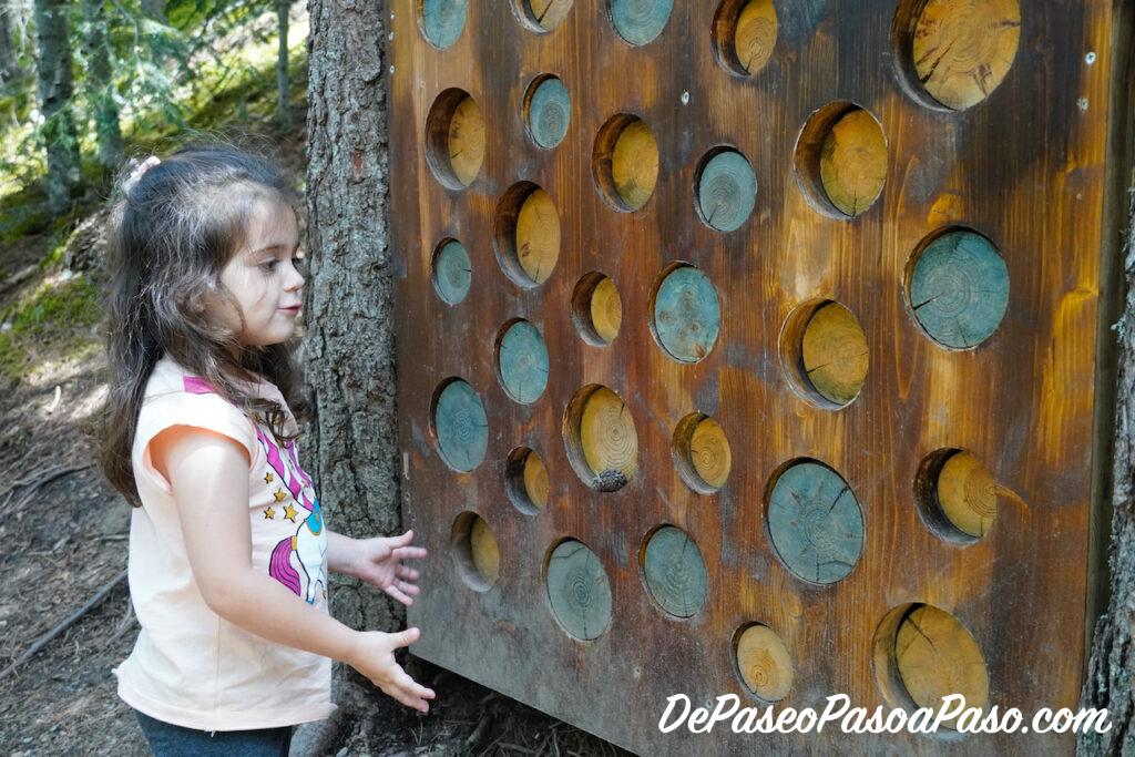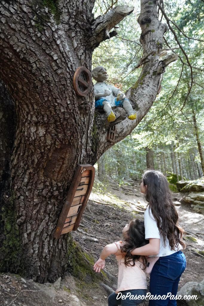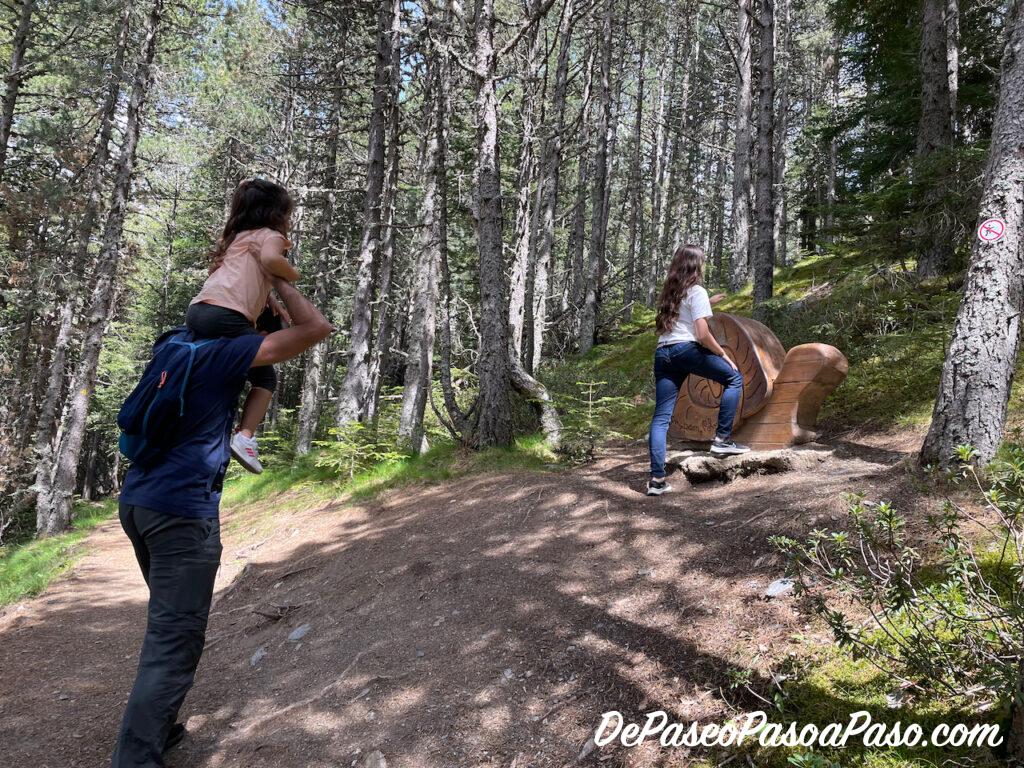Como te comentaba es un paseo pensado para toda la familia, más allá de que es un recorrido sencillo y con poco desnivel (el desnivel más marcado es de bajada, la subida es más progresiva), está repleto de figuras y actividades lúdicas para disfrutar de la naturaleza y de la magia del bosque de los Menairons. Aquí los más pequeños se divierten y sueltan su imaginación!