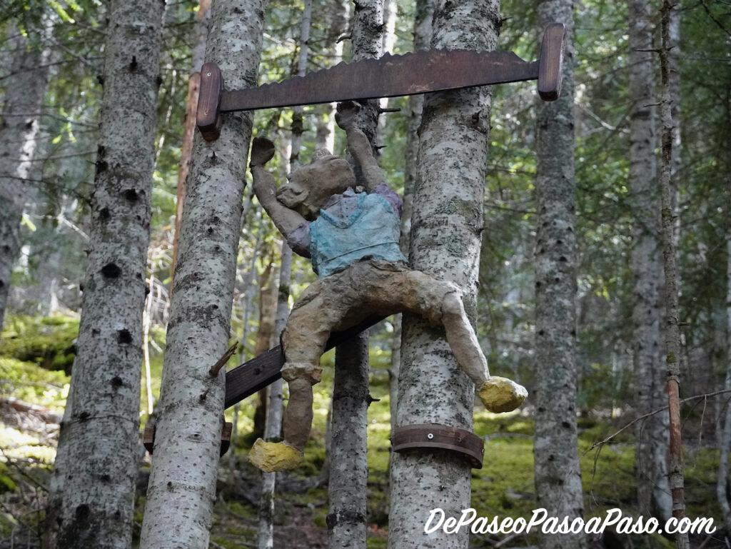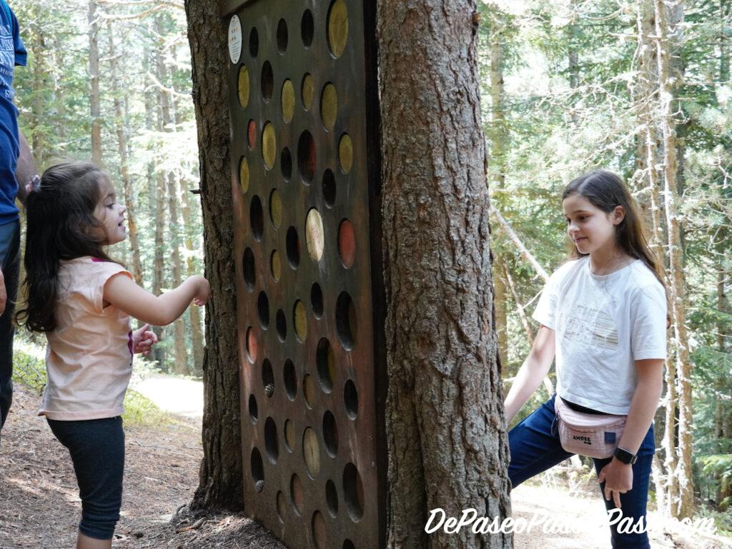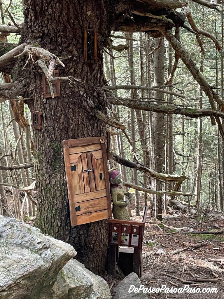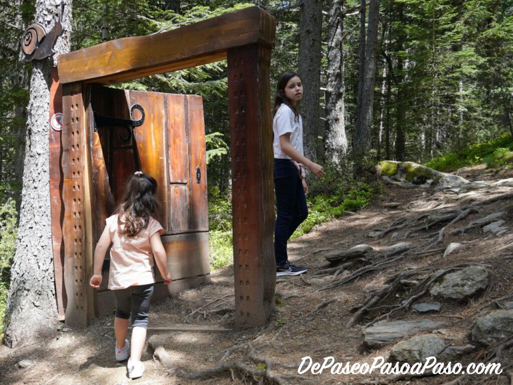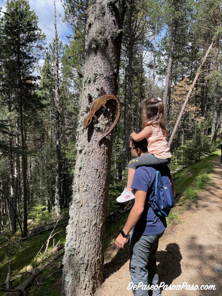 Como te comentaba es un paseo pensado para toda la familia, más allá de que es un recorrido sencillo y con poco desnivel (el desnivel más marcado es de bajada, la subida es más progresiva), está repleto de figuras y actividades lúdicas para disfrutar de la naturaleza y de la magia del bosque de los Menairons. Aquí los más pequeños se divierten y sueltan su imaginación!