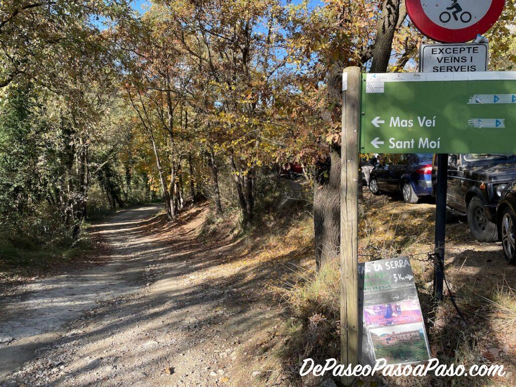 Comenzamos nuestro paseo tomando el camino con dirección “Mas Veí” “Sant Moí”.