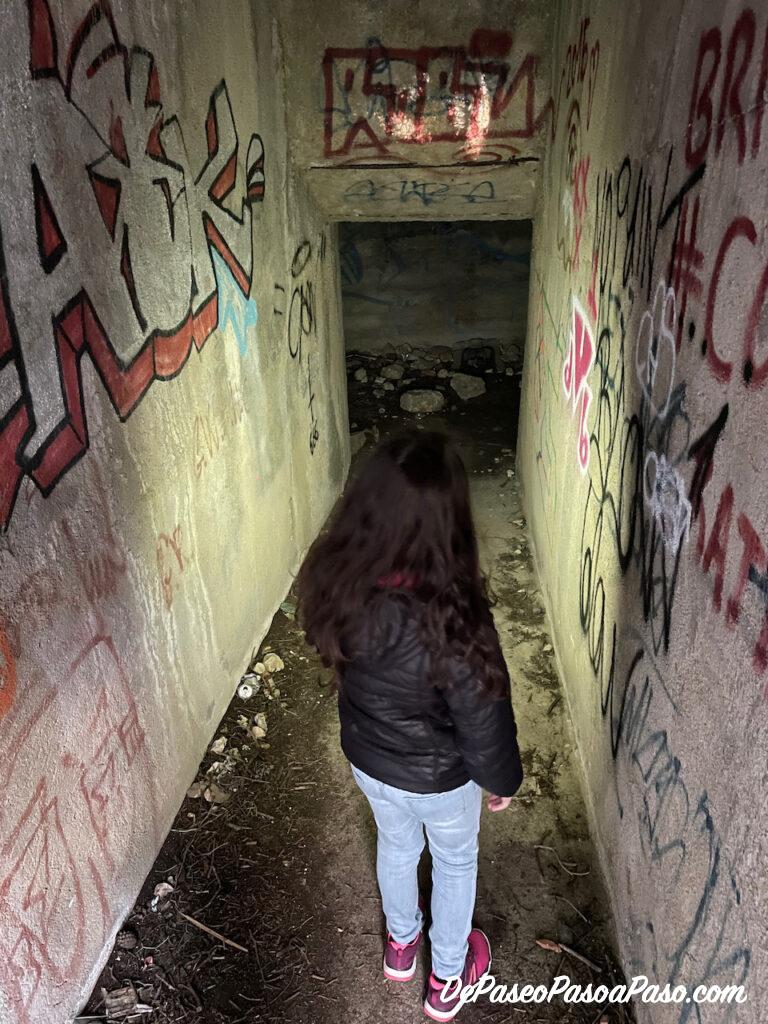 Solo nos asomamos unos metros por dentro de el búnker, la verdad es que está bastante descuidado, y la oscuridad da bastante miedo, je.