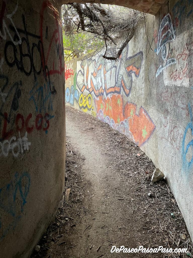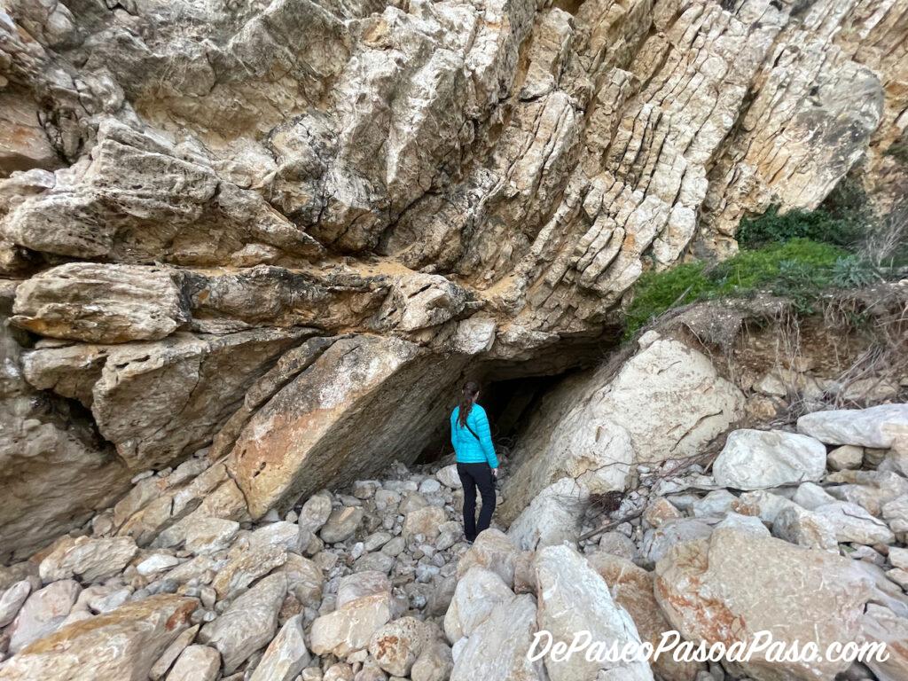 Al llegar dejar el sendero y llegar a la calle, nos dirigimos hacia la izquierda, pasando por debajo de un edificio para llegar a la cala Cova del Lladre📍.