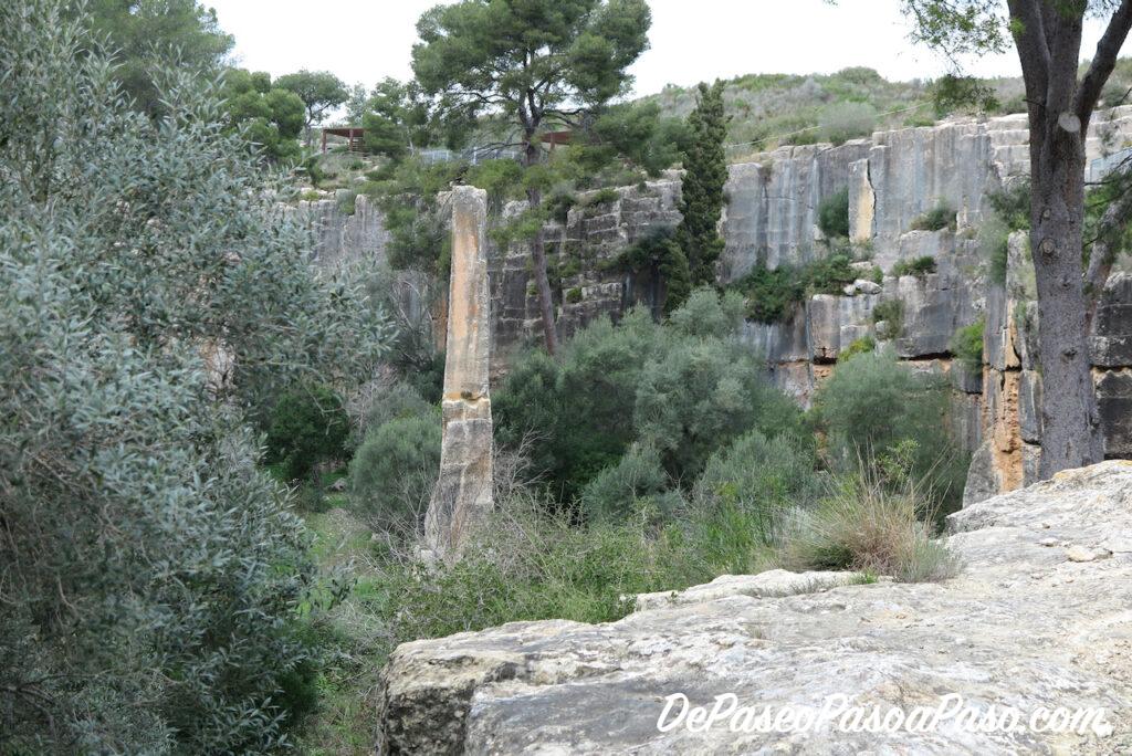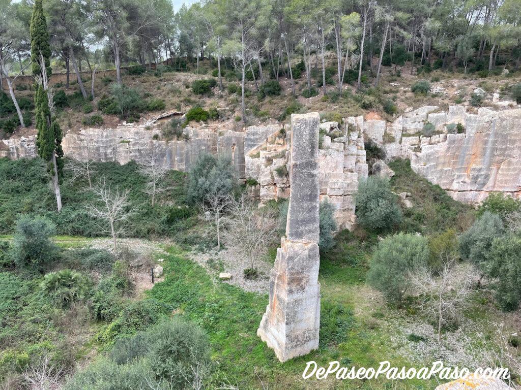 Allí mismo comienza el recorrido que bordea el hueco de la cantera del cual se extrajeron 50.000 m3 de piedra calcárea durante el período del Imperio romano y la República romana. Lo más extraordinario de esta cantera es la columna testigo que permanece intacta en el centro del hueco; esta columna muestra de forma muy clara cuanto se extrajo de piedra.