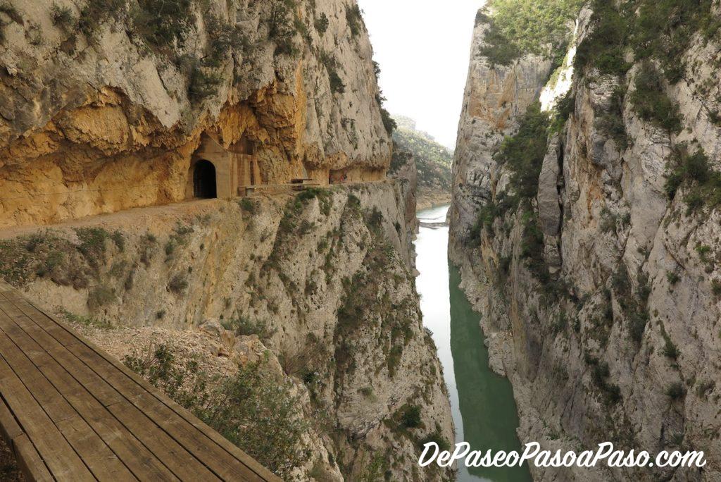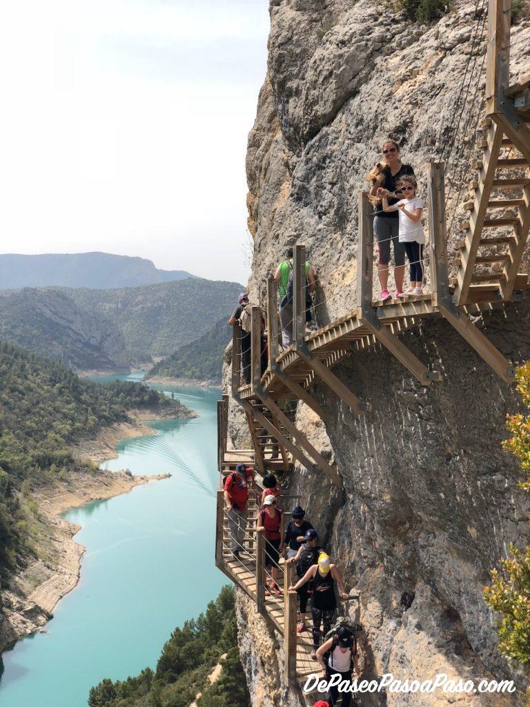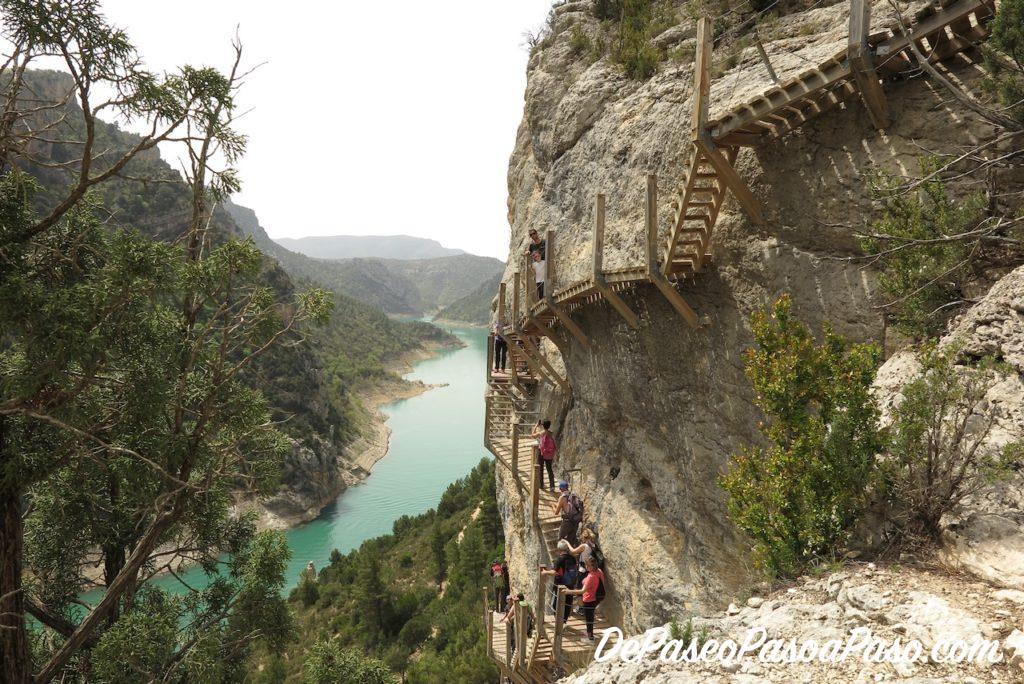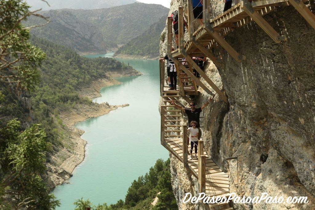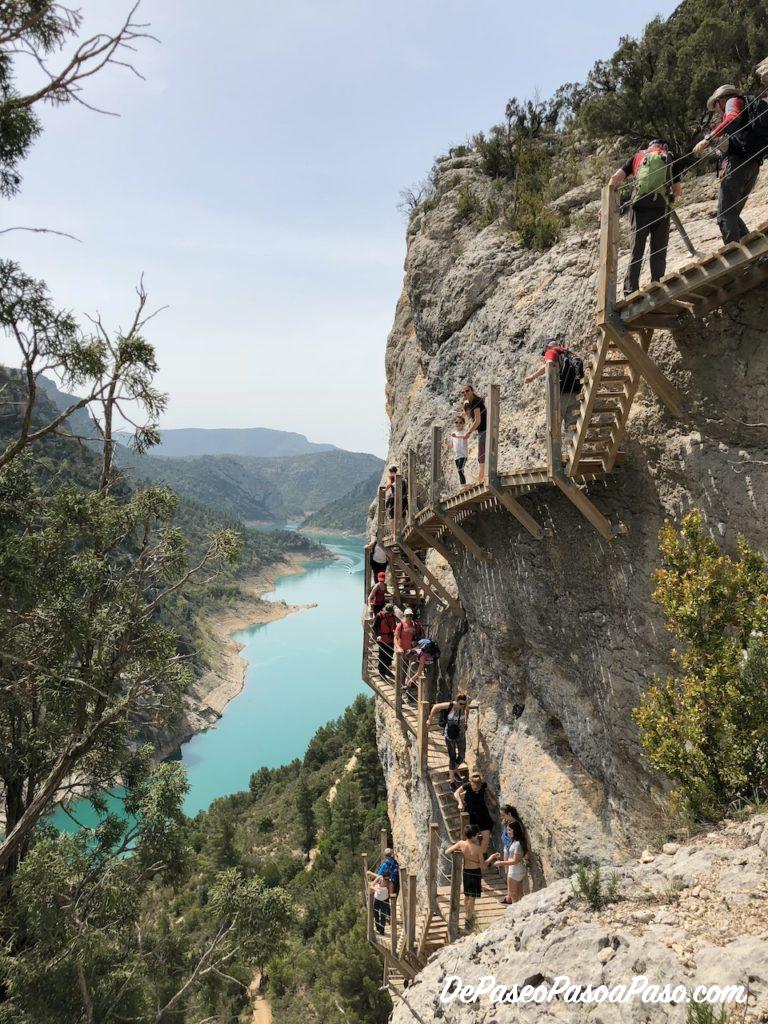 Es posible extender el paseo hasta las Pasarelas Montfalcó, unas pasarelas y escaleras de maderas sujetas a una pared de roca vertical, donde las vistas son impresionantes, pero también es un sitio de mucho vértigo.