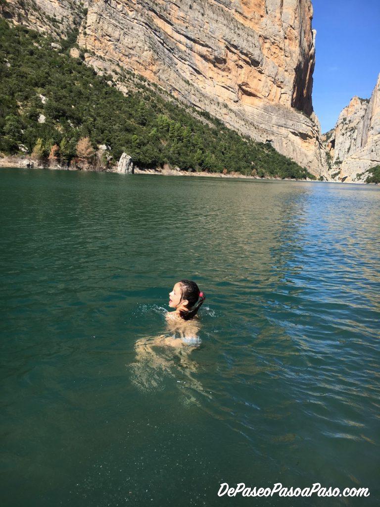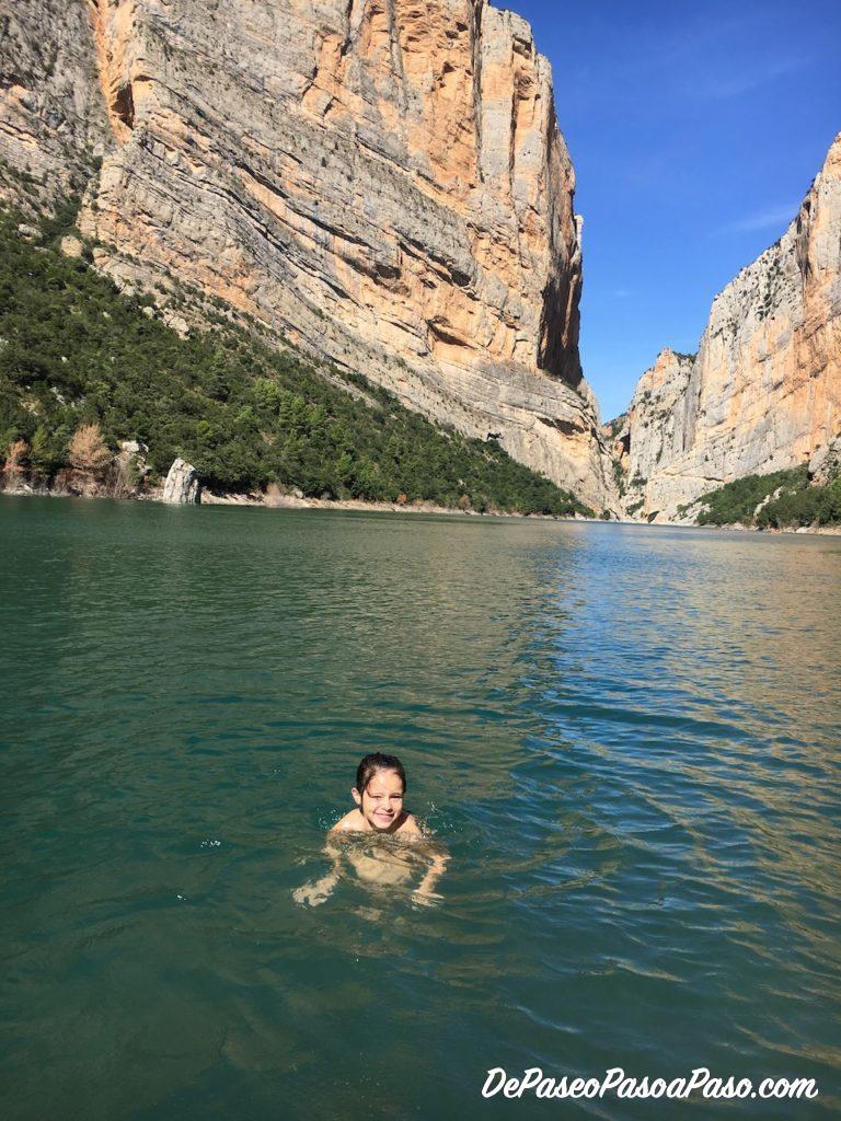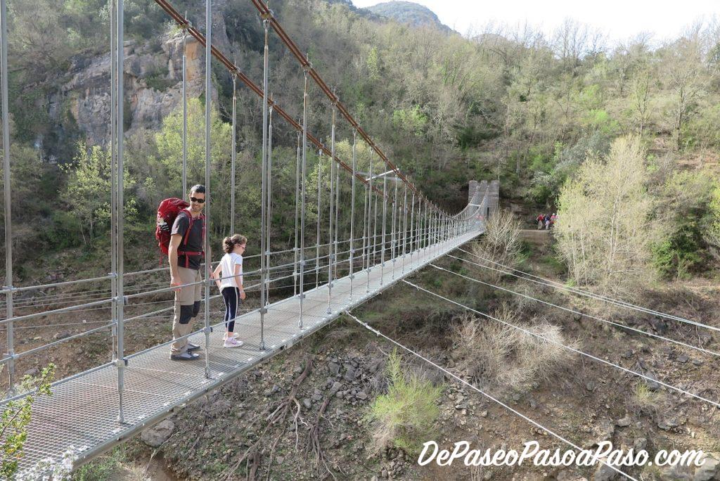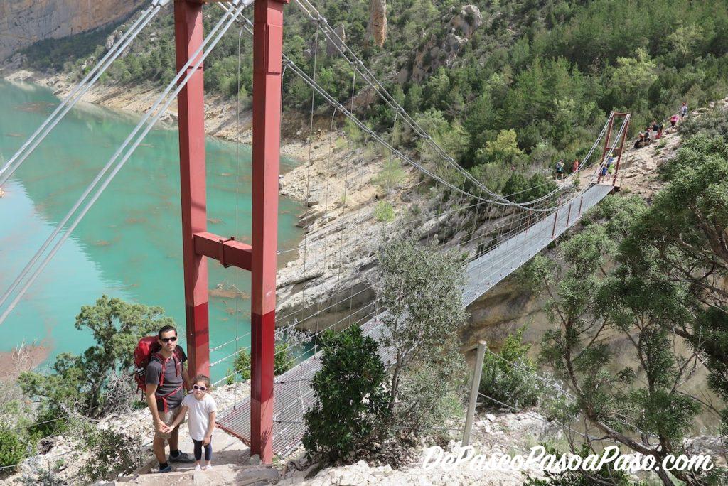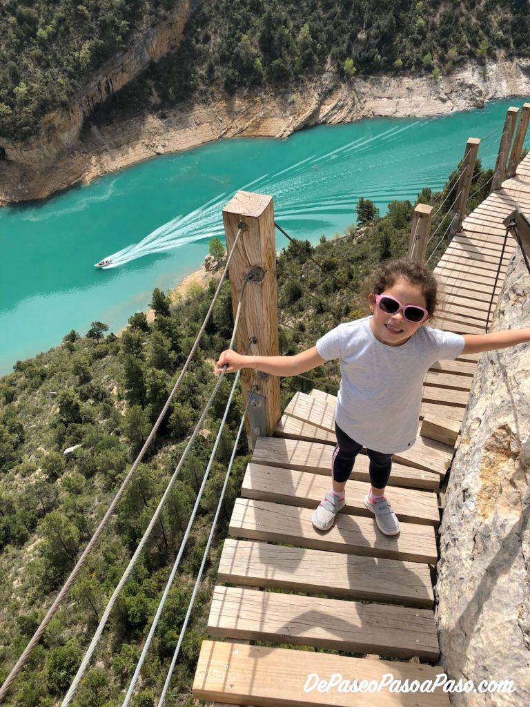 Luego de cruzar el primer puente, que es toda una aventura para los niños, continuamos por un sendero con más vegetación hasta llegar a la zona donde comienza el desfiladero. En este punto el paisaje cambia, lo que predomina es la vista de acantilado y las paredes verticales alzándose a ambos lados del río, formando el Congost de Mont-rebei📍.