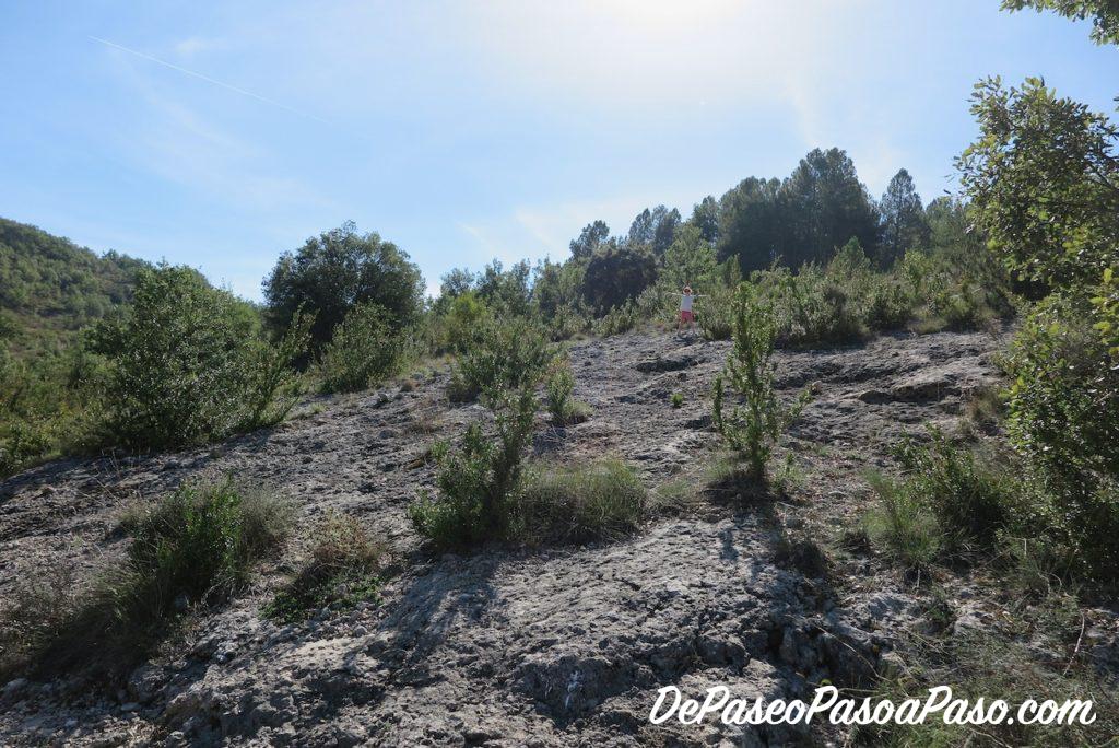 Luego de dejar el desfiladero atrás, y avanzar algo más, decidimos parar para descansar y comer nuestros bocadillos. Buscamos un lugar bonito y con lindas vistas para disfrutar al máximo de este increíble lugar. Desde allí podemos ver nuestro destino: Las Pasarelas Montfalcó📍. Todavía nos queda un buen tramo de camino hasta allí, por lo que comemos y continuamos nuestra excursión.