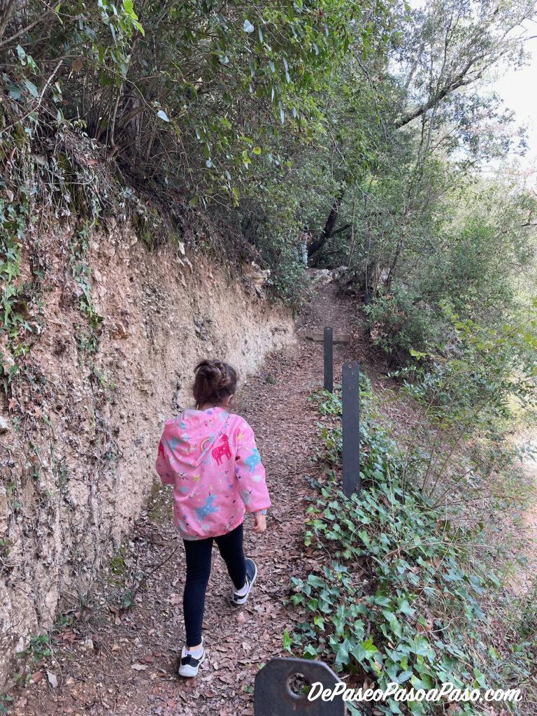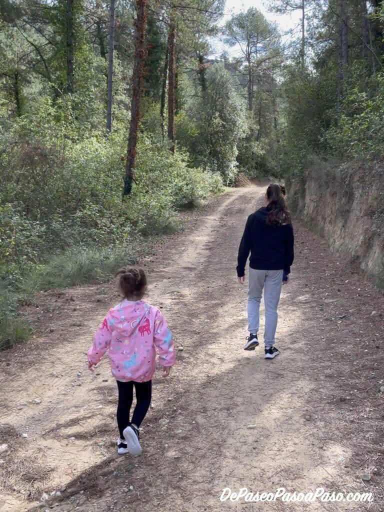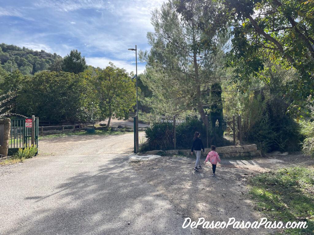 Comenzamos el paseo hacia Les Coves de Cal Llucià en las inmediaciones al Centro “Gos Blanc”, allí dejamos el coche a un lado de la calle📍 y comenzamos a caminar primero unos 150 m por calle asfaltada hasta la entrada al Gos Blanc📍, en donde nos desviamos a la derecha y enseguida a la izquierda por camino de tierra📍.