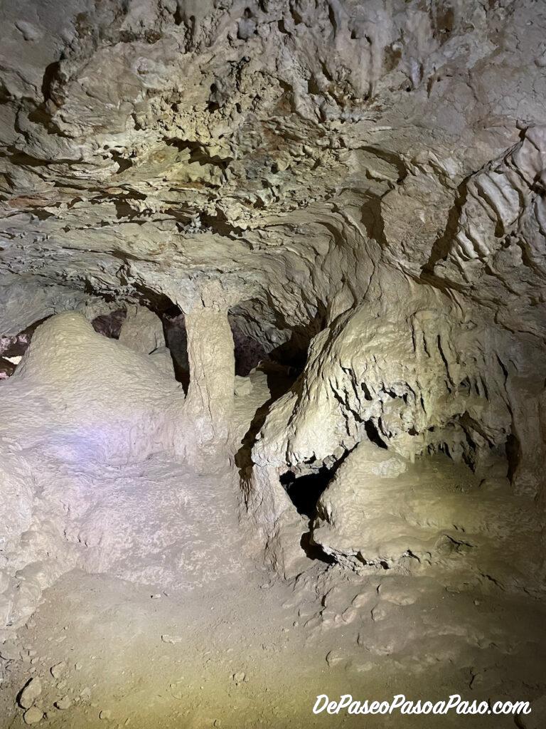 Son cuevas laberínticas de origen calcáreo, con un recorrido aproximado de 450 metros y llegando a una profundidad de 6 metros en un pozo que deriva en una gran galería. La sala más grande tiene aproximadamente 100 m2.