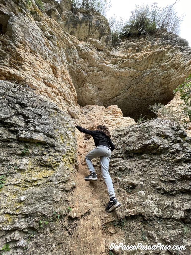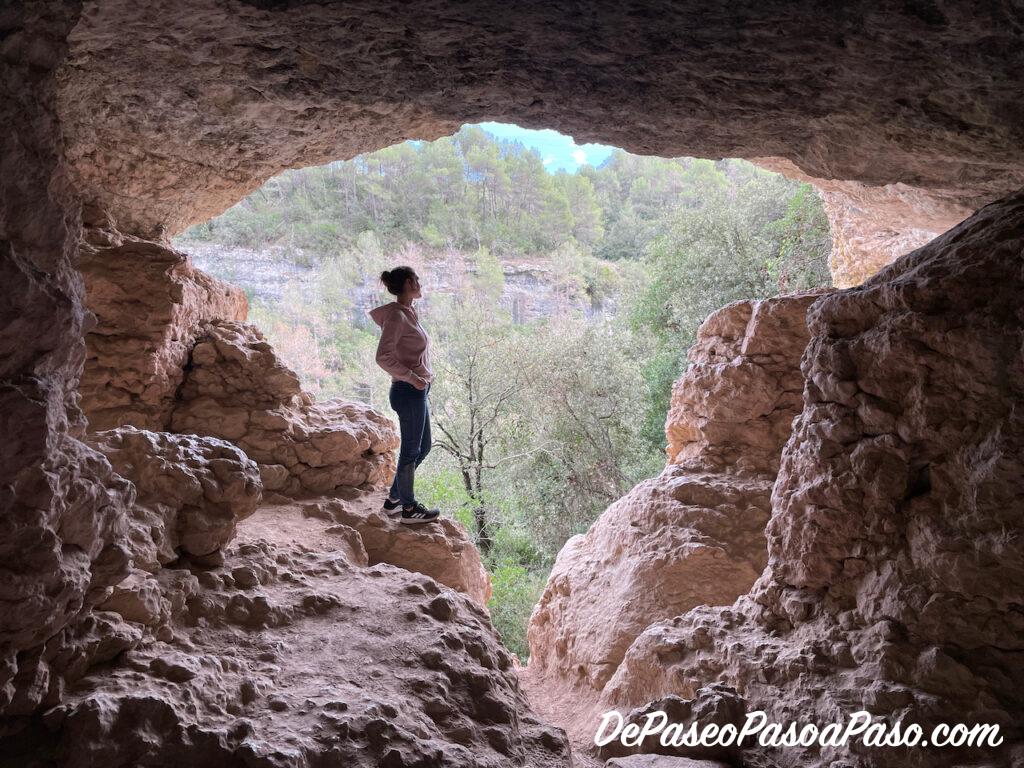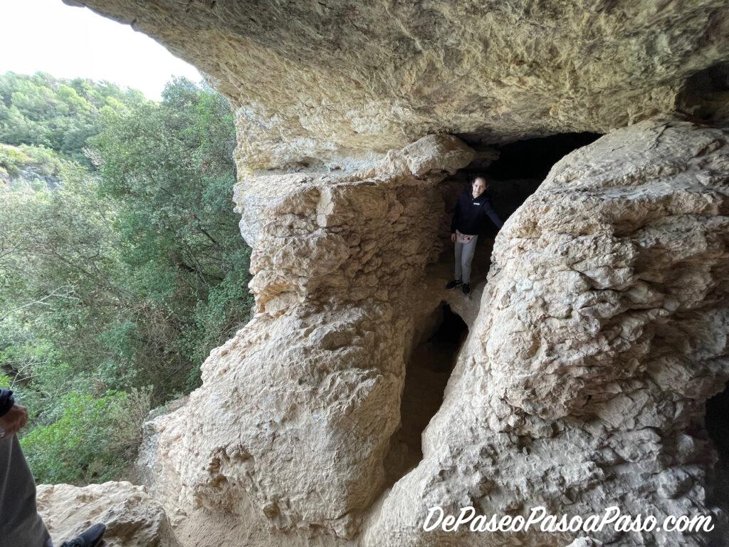 En el primer acercamiento a las Coves de Cal Llucià vemos una gran entrada pero para acceder hay que trepar por la roca (bastante difícil). Si continuamos unos pocos metros más encontramos una entrada súper sencilla y sin desnivel.