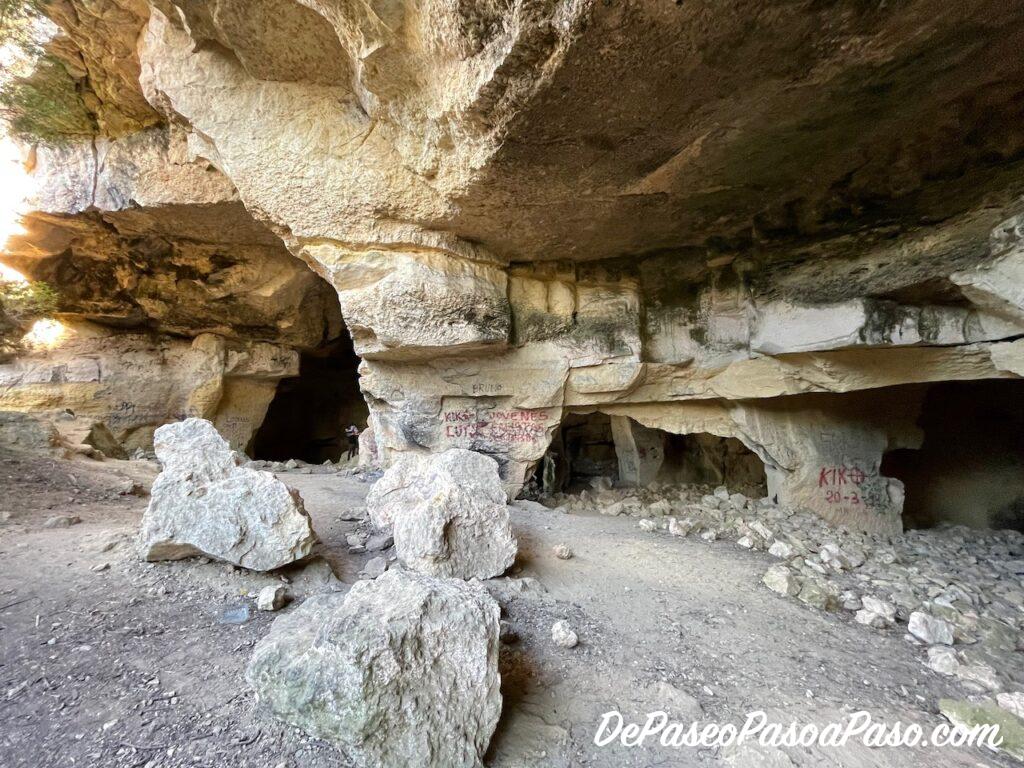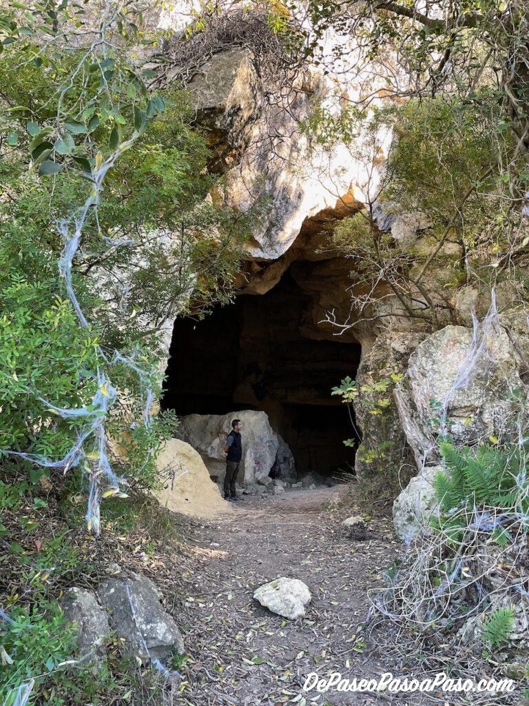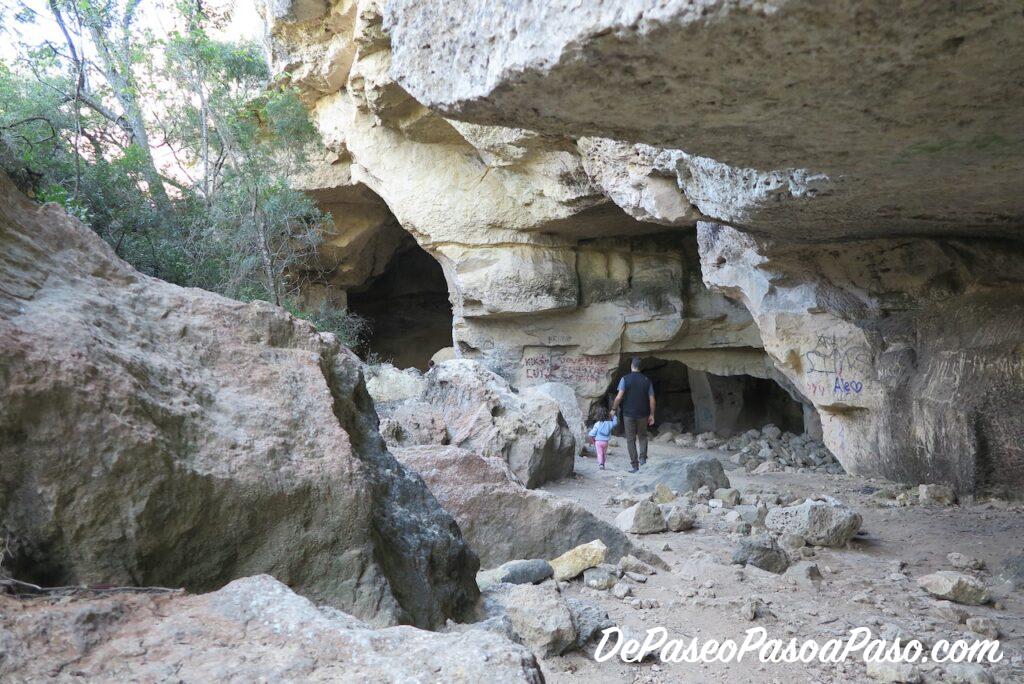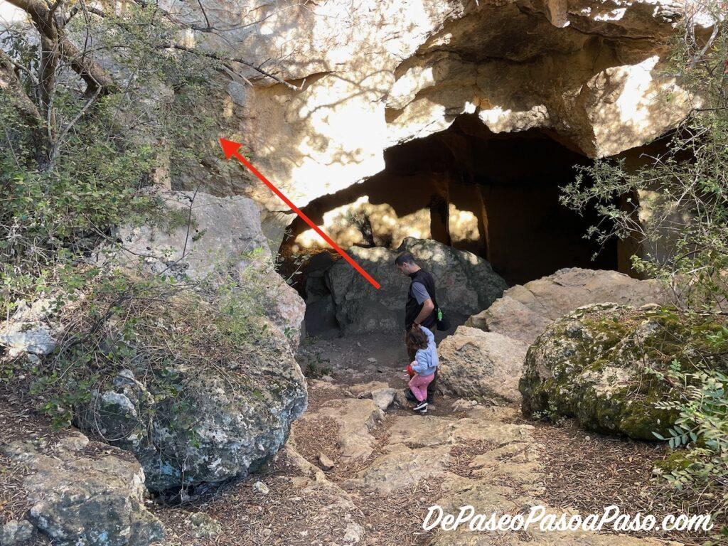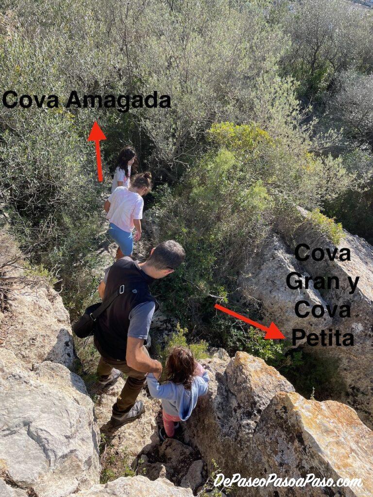 Esta cueva no tiene gran atractivo (al menos por fuera) por lo que puedes evitarla y en lugar de bajar hacia la derecha lo haces hacia la izquierda para llegar a la “puerta” de entrada de la Cova Amagada, y luego continuar el sendero hacia las demás cuevas.