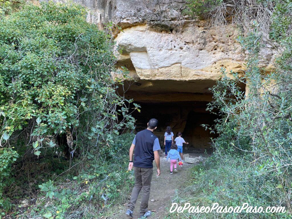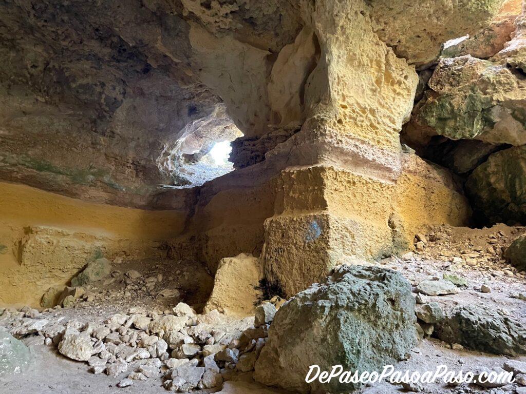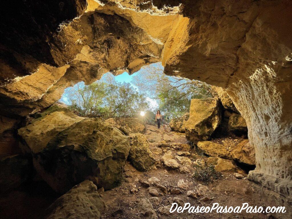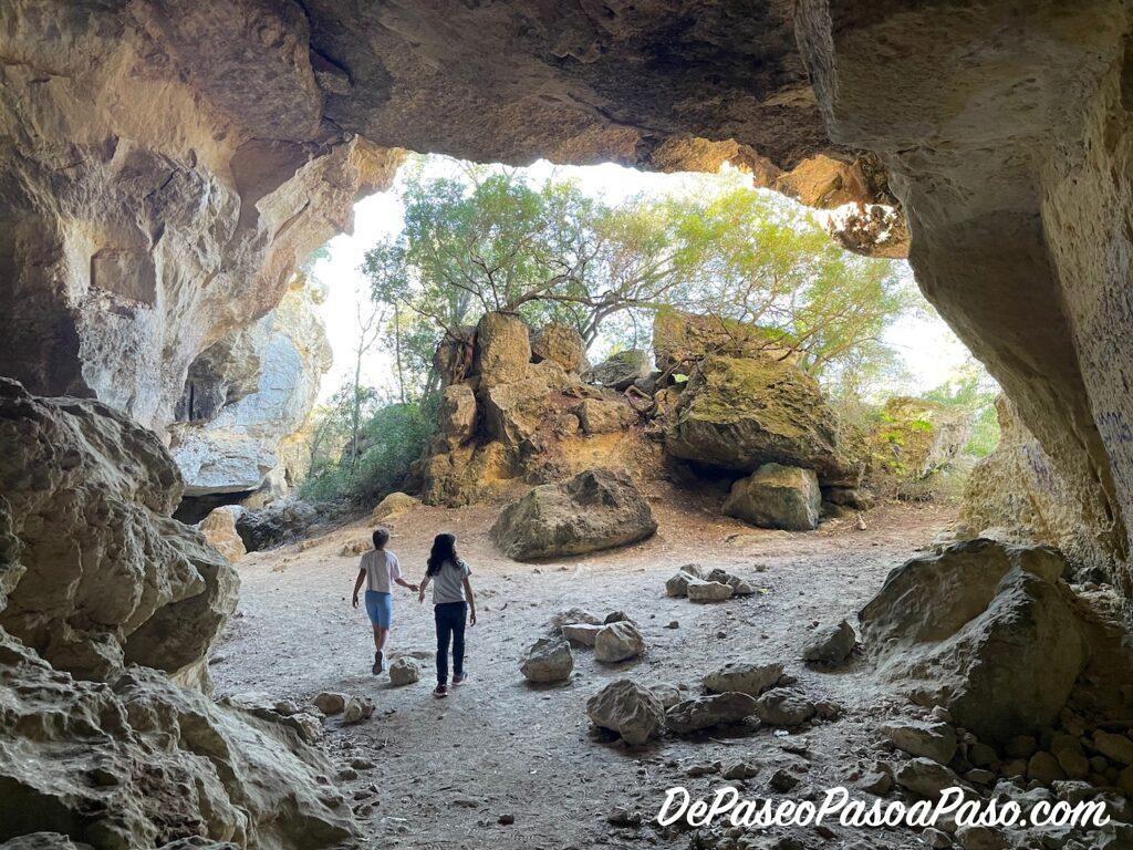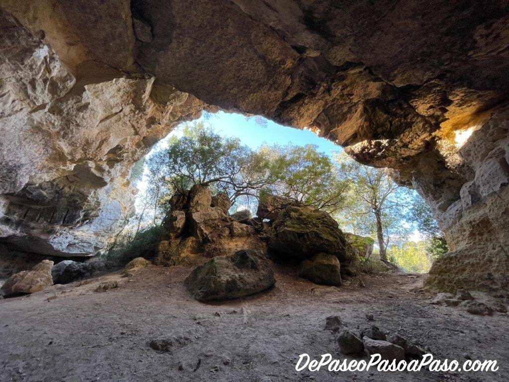 Esta cueva no tiene gran atractivo (al menos por fuera) por lo que puedes evitarla y en lugar de bajar hacia la derecha lo haces hacia la izquierda para llegar a la “puerta” de entrada de la Cova Amagada, y luego continuar el sendero hacia las demás cuevas.