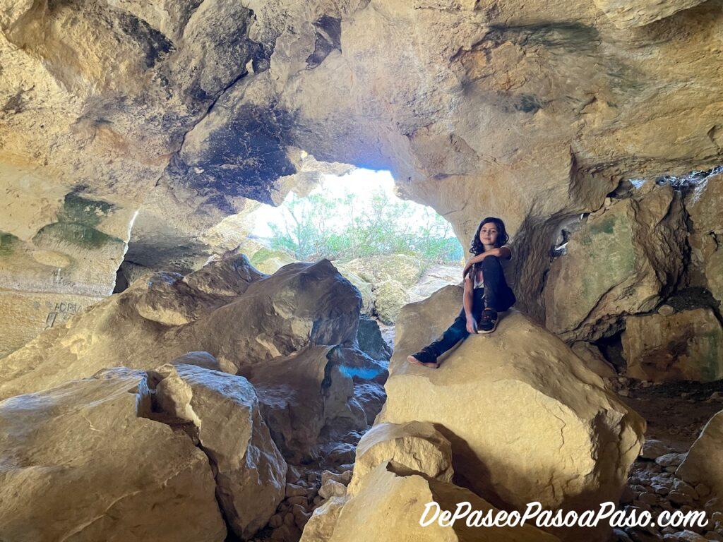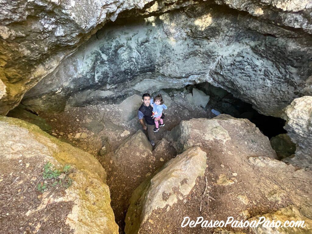 En esta cueva📍(no sé su nombre) solo llegamos hasta la entrada, ya que para acceder es necesario reptar por entre las rocas, por lo que he leído.