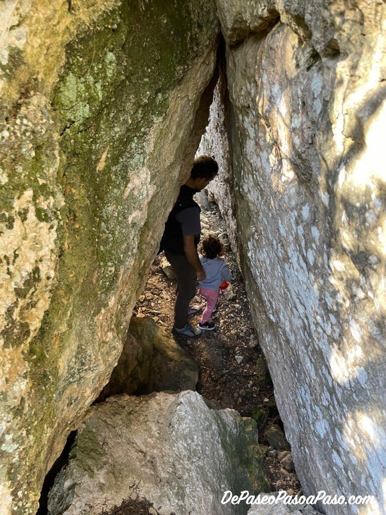 Llegados al punto de las siguientes fotos, bajamos por la roca, y descendemos hacia la derecha por un paso no muy sencillo. Así llegamos a la primera de las cuevas que visitamos.