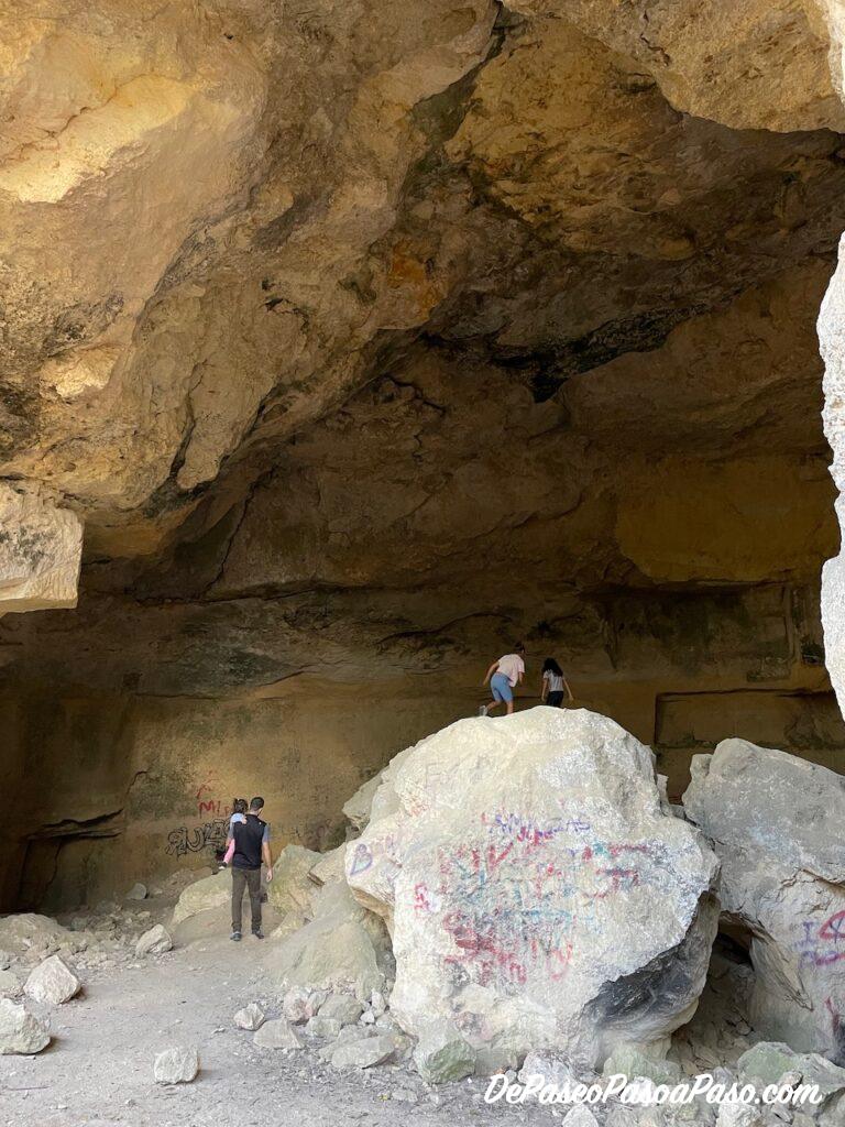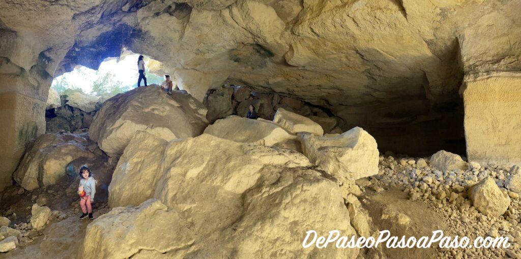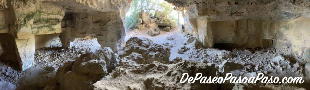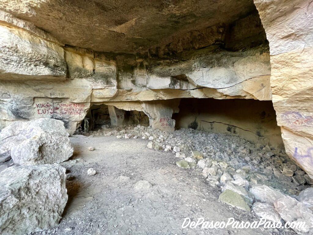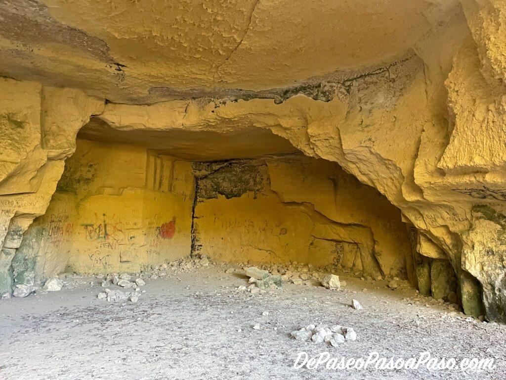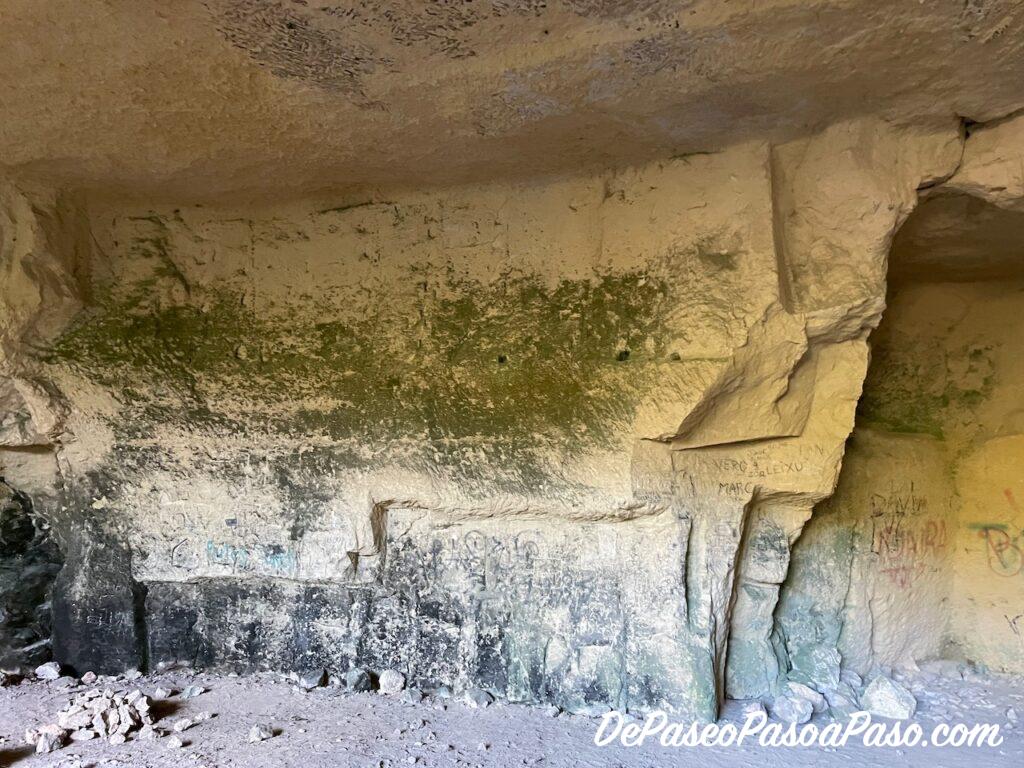 En su interior podemos ver con claridad los trazos del trabajo que realizaron para extraer roca. También vemos columnas de roca intacta, que dejaron a modo de apuntalamiento para evitar hundimientos.