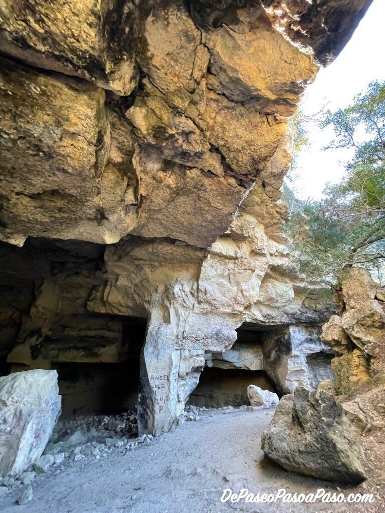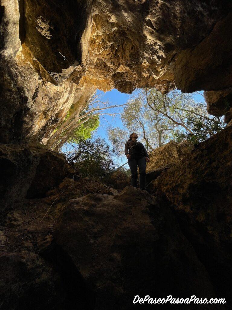Para llegar a esta cueva seguimos el sendero sencillo, hasta un punto en donde se divide. Uno continua bajando bordeando un tejido, pero nosotros tomamos el sendero que sale hacia la izquierda subiendo un poco de pendiente. Este camino está un tanto invadido por la vegetación, y va subiendo de a poco, luego de un giro a la izquierda llegamos a la cueva.