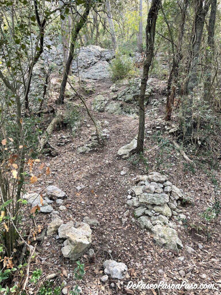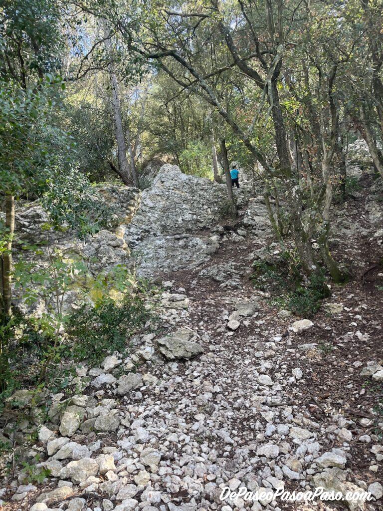 Luego de un buen tramo hay que estar atentos a un cartel que indica la subida hacia las grietas de Els Esgavellats! Se encuentra en aquí📍. Ahora transitamos por un sendero mas estrecho y desparejo.