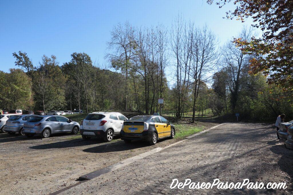 Nos levantamos temprano y comenzamos el viaje de 2,5 hs hasta Olot. Llegamos antes del mediodía al parking📍 del Fageda en donde dejamos el coche, nos llamó la atención la cantidad de coches que había, siendo que era lunes, pero todavía había muchos espacios libres. (tiene capacidad para 130 vehículos, y nos costó 3.9 euros).
