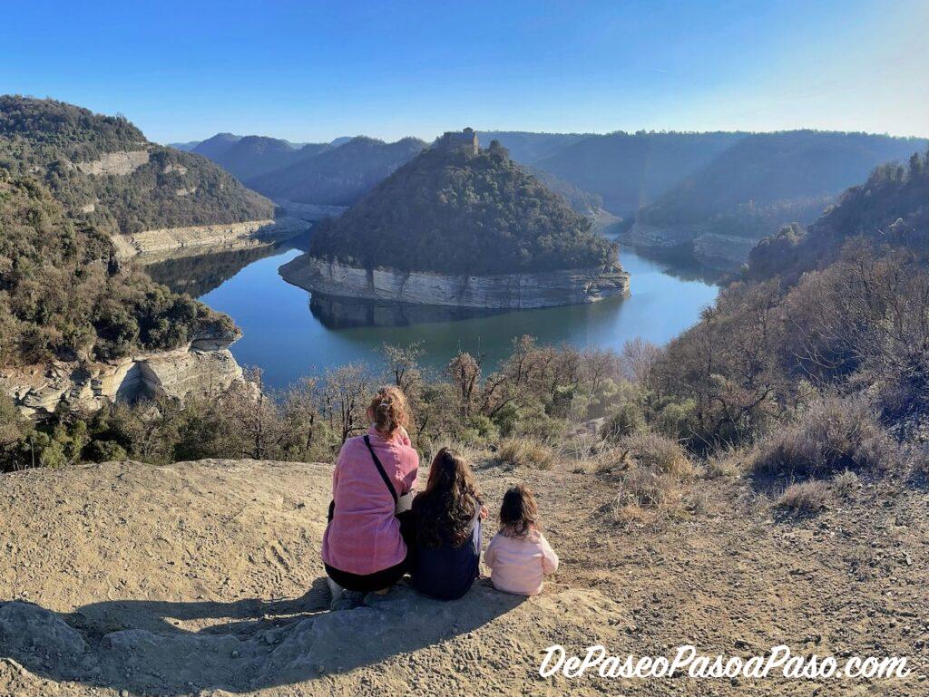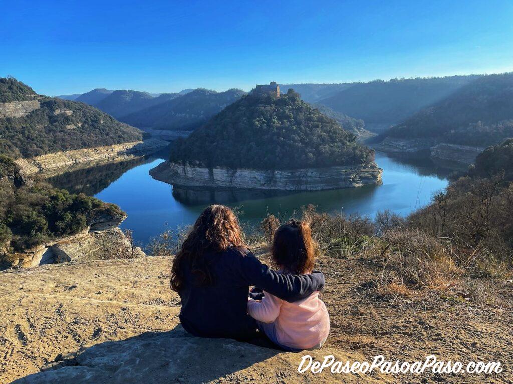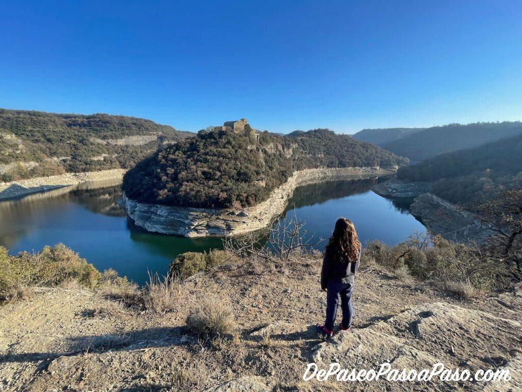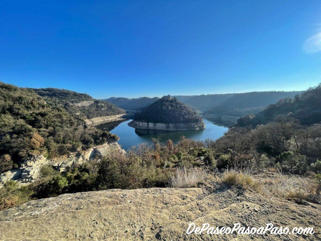 Y en unos pocos metros salimos en el “verdadero” mirador del Ter📍 con unas vistas hermosas del meandro del río y del Monastir de Sant Pere de Casserres en lo alto de la colina!!
