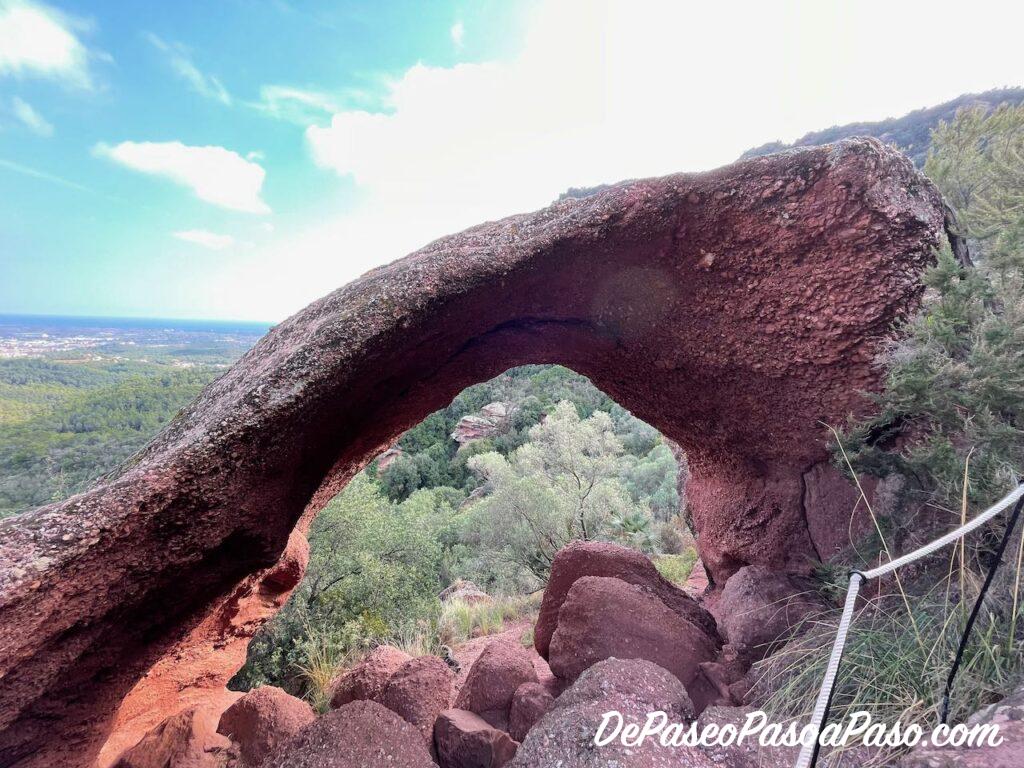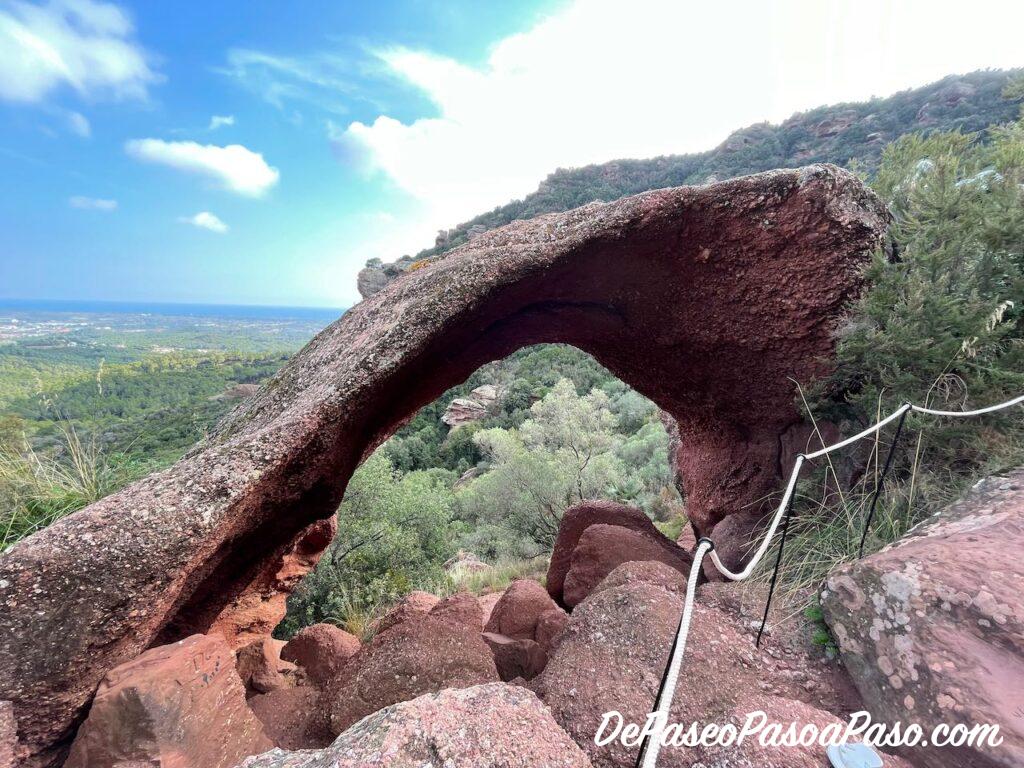 Al llegar a la Roca Foradada nos encontramos con una cuerda para impedir a las personas subir sobre la roca, y protegerla así de la erosión humana.