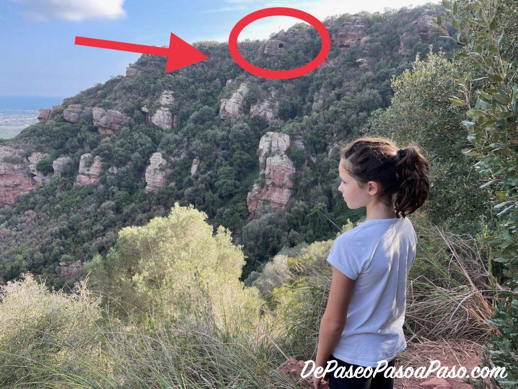 La Roca Foradada de Bruguers📍 esta muy próxima a la ermita, y llegar a ella es muy sencillo, con algunas rocas donde los niños pueden jugar y trepar.
