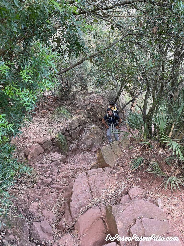 A partir de aquí el camino comienza a subir hasta llegar a una zona plana, donde debemos coger el sendero que sale hacia la izquierda.