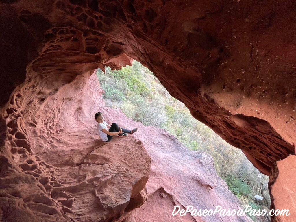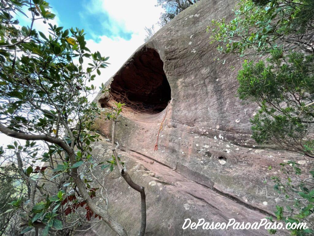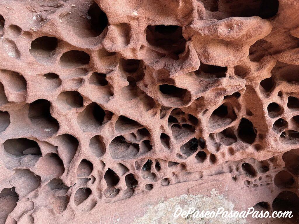 Poco más adelante hay una desviación en el camino hacia la derecha que sube a una pequeña cueva, donde podemos observar de cerca el efecto de la erosión en la roca.
