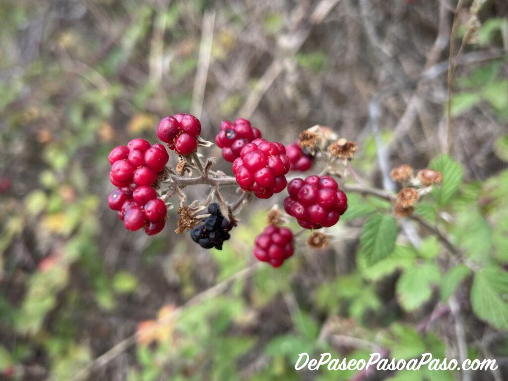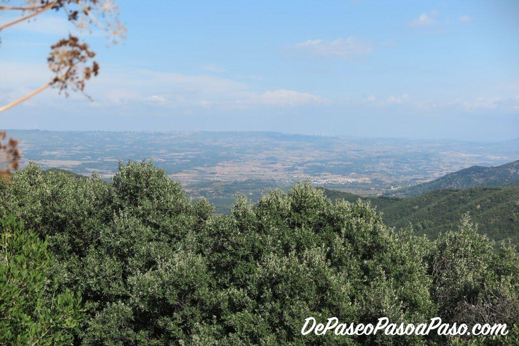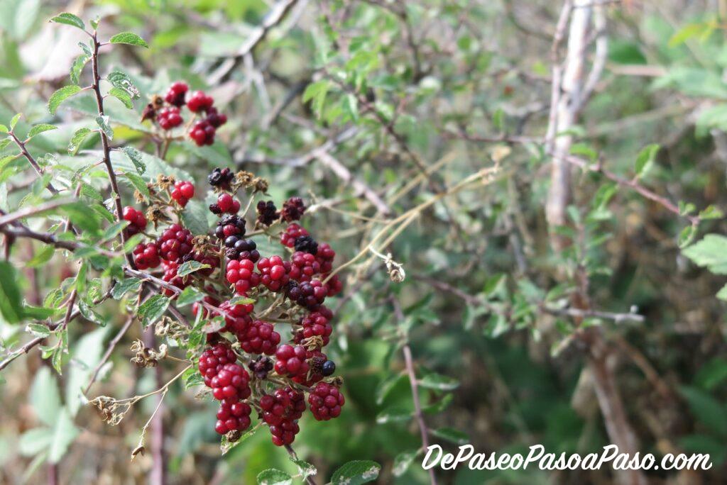El camino comienza transitando por una senda despejada y cuesta arriba, con una bonita vista de las montañas hacia la izquierda. A los lados del camino vamos encontrando castaños y moras.