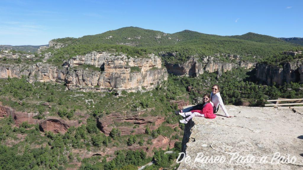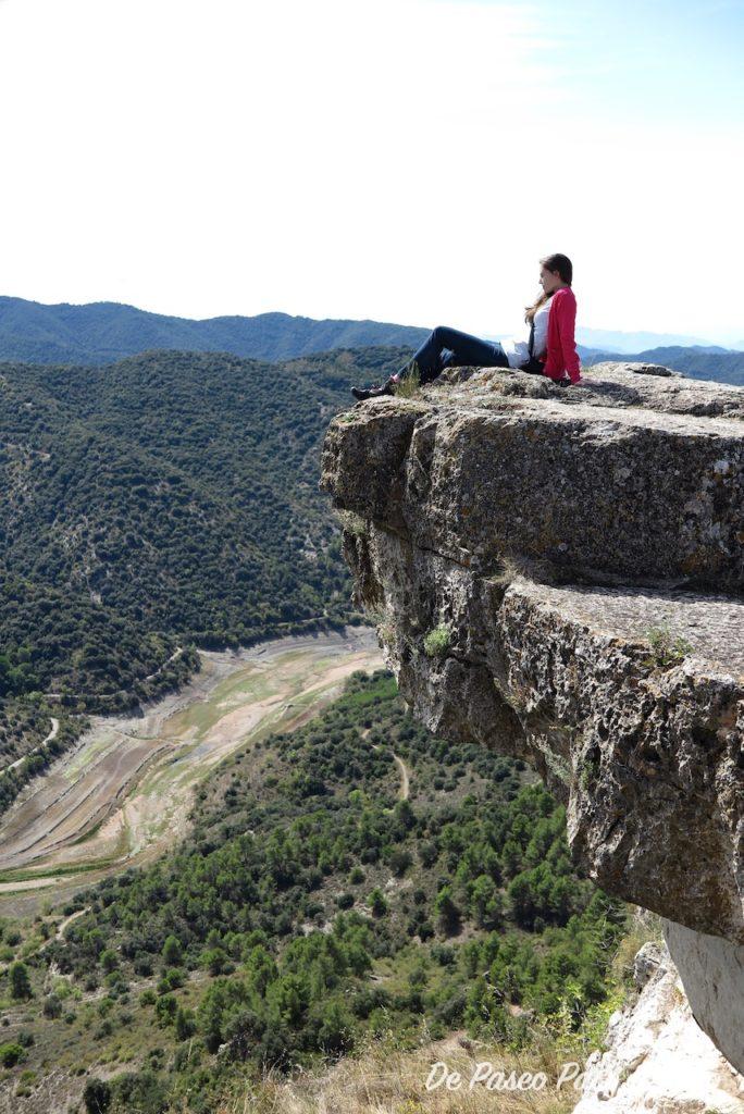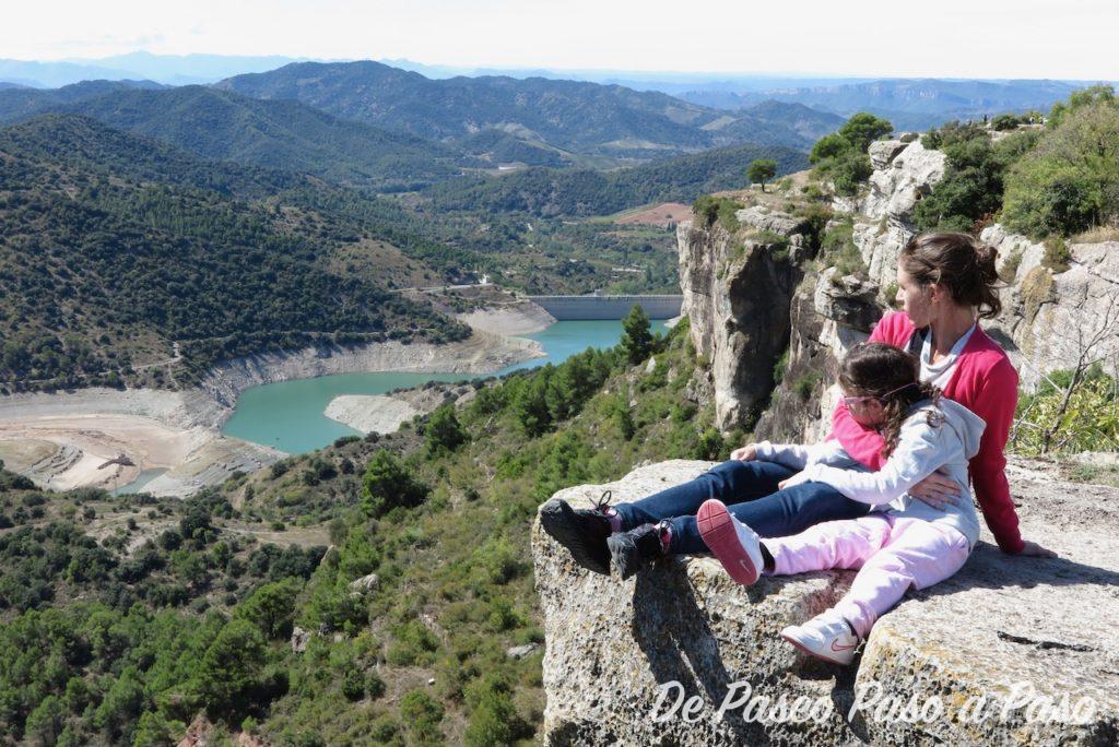 Niña en mirador del salto de la Reina Mora, en donde se tiene una panorámica del pantano Siurana